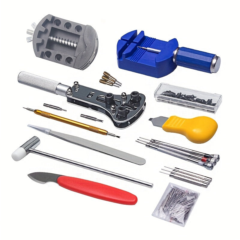 Kit de reparación de relojes 147 piezas Herramientas de acero al carbono con bolsa de almacenamiento para uso doméstico
