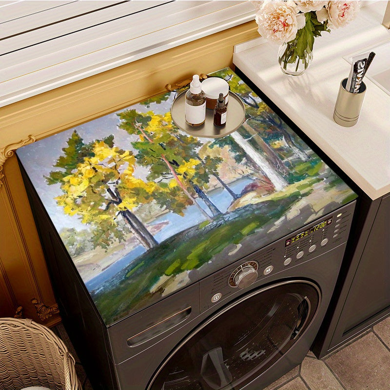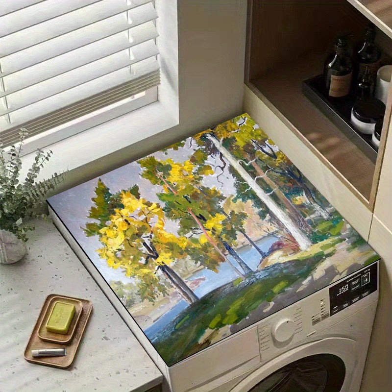 Alfombrilla de protección para lavadora de poliéster de secado rápido y absorbente de agua, diseño de bosque