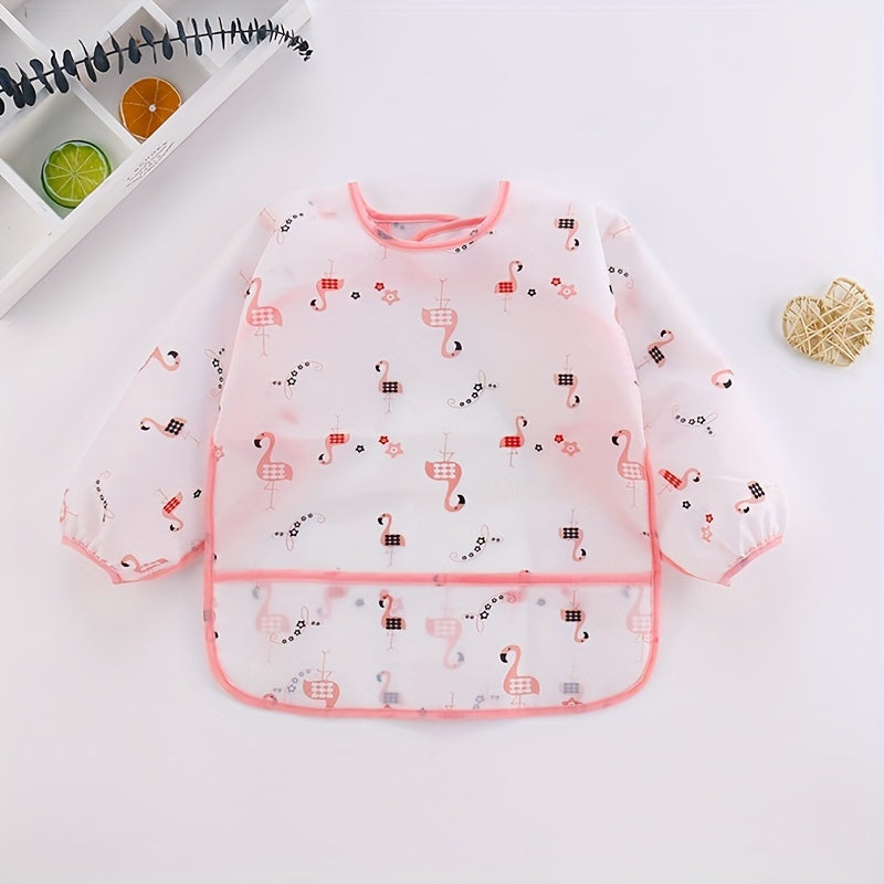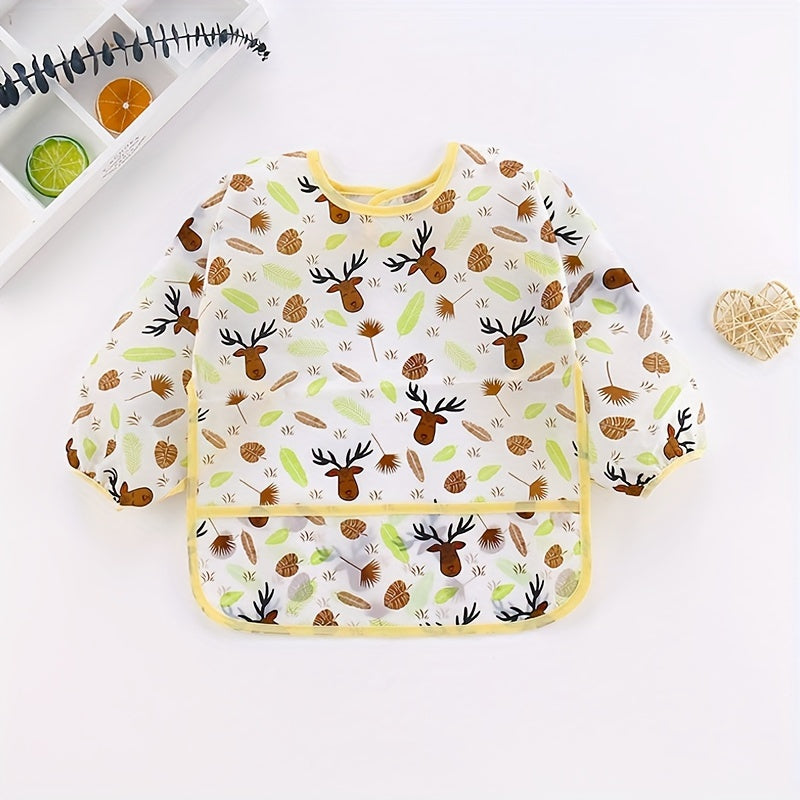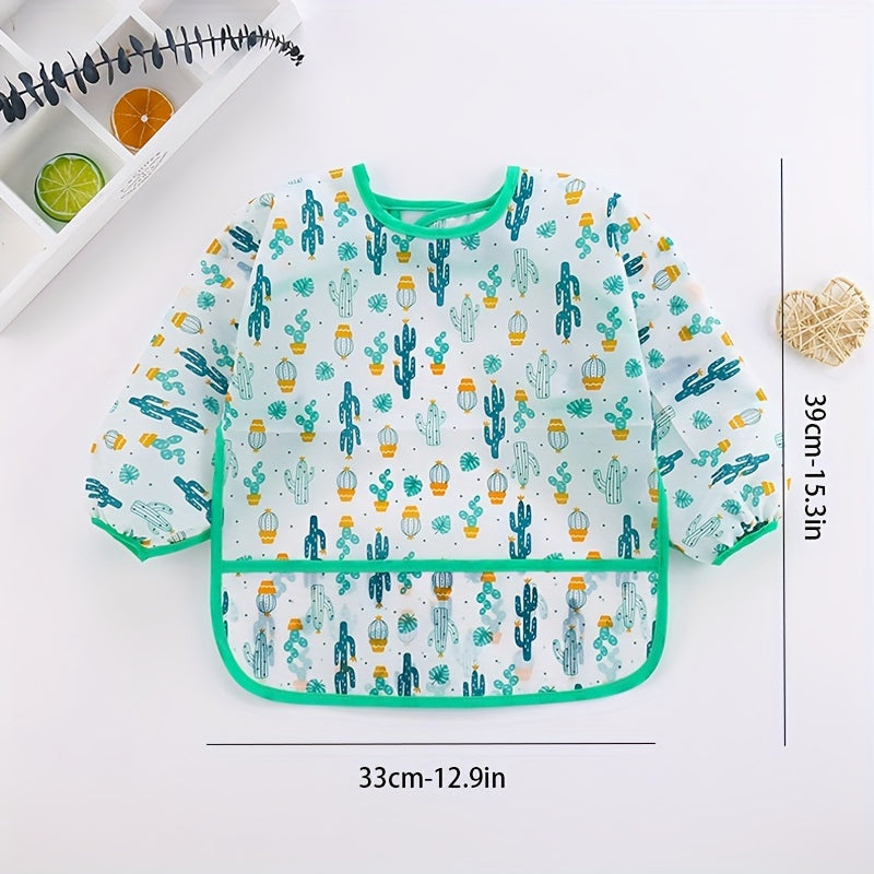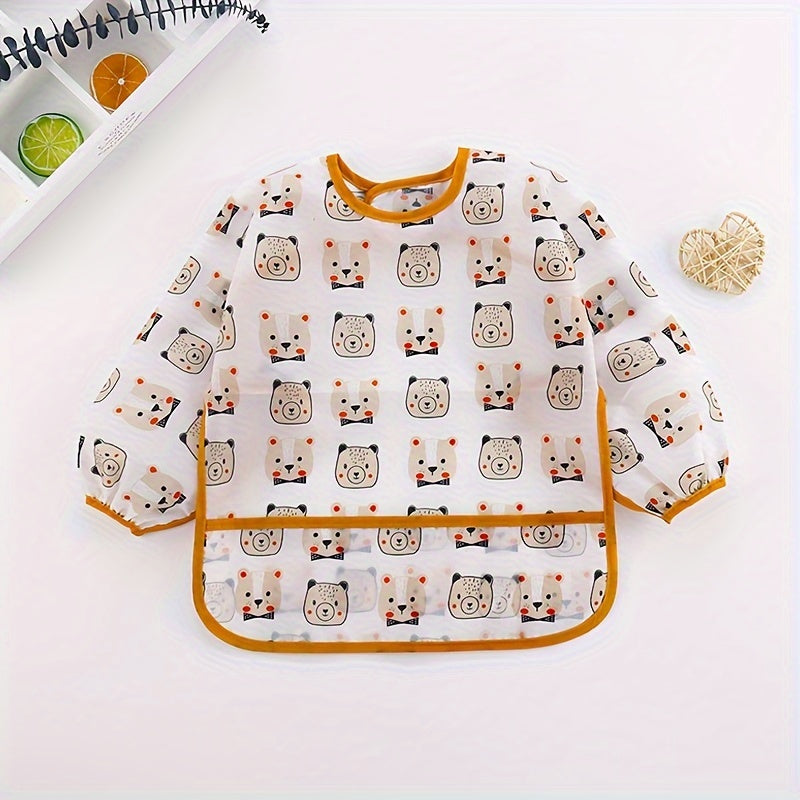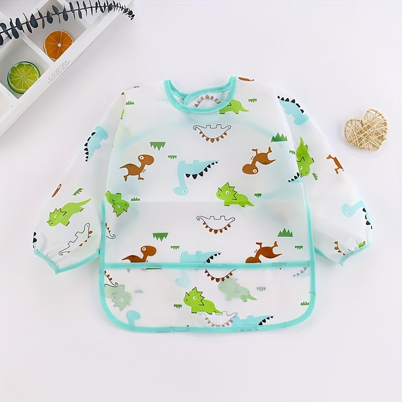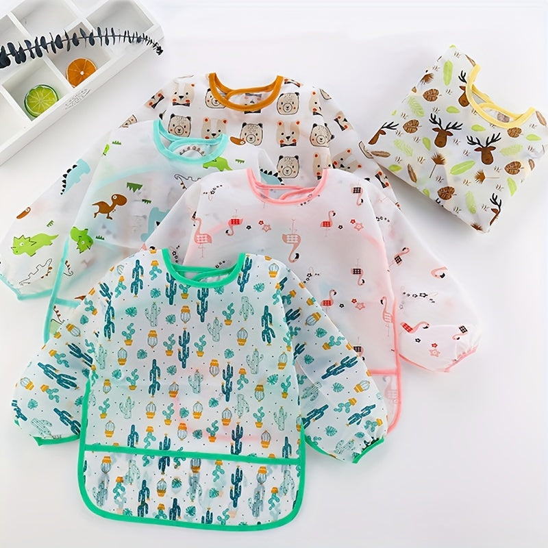 Babero infantil a prueba de agua con dibujos animados y mangas, a prueba de manchas, cierre fácil, mezcla de poliéster, incluye chaqueta de PU