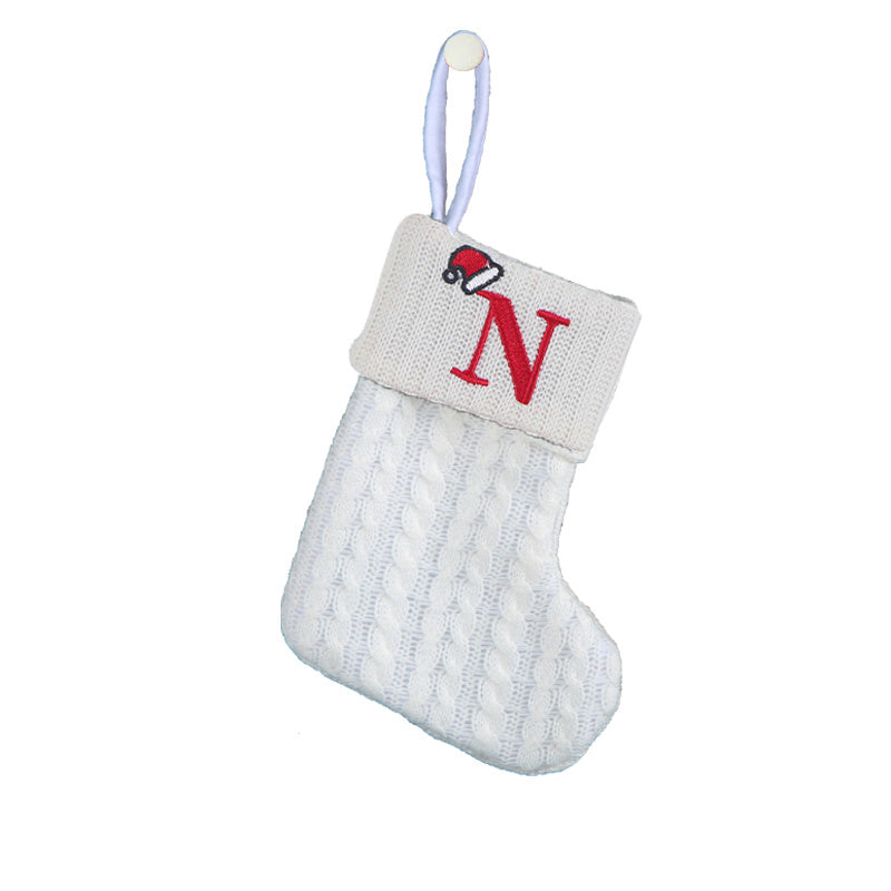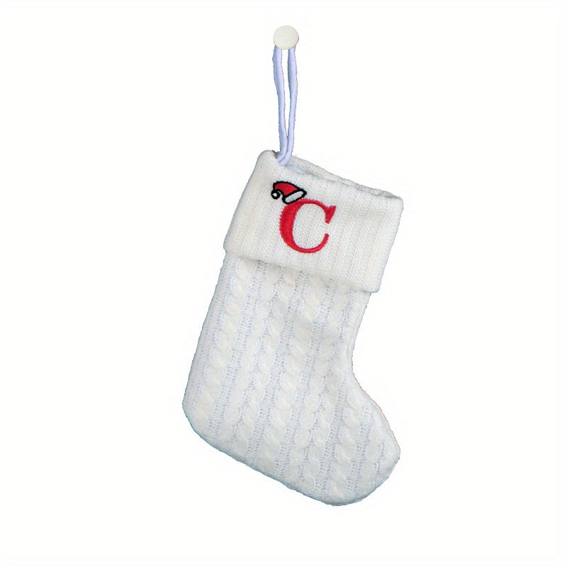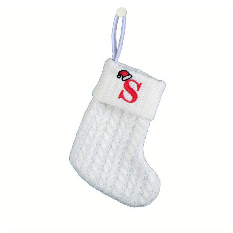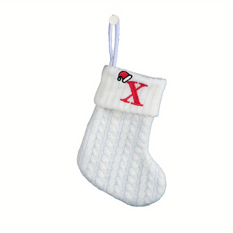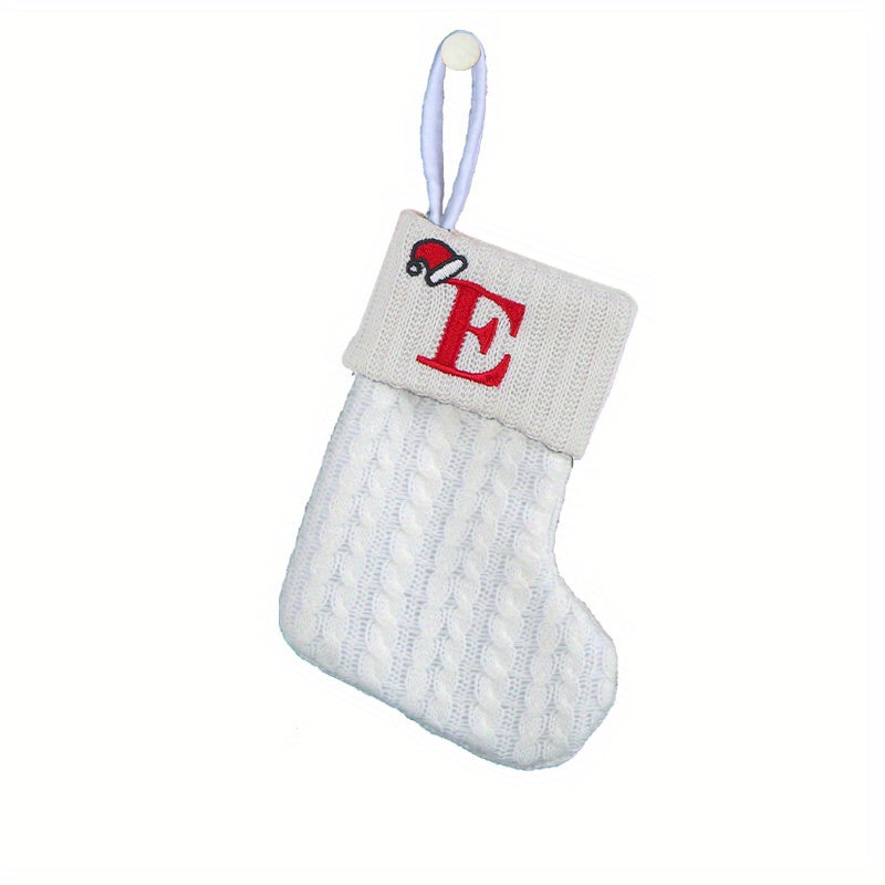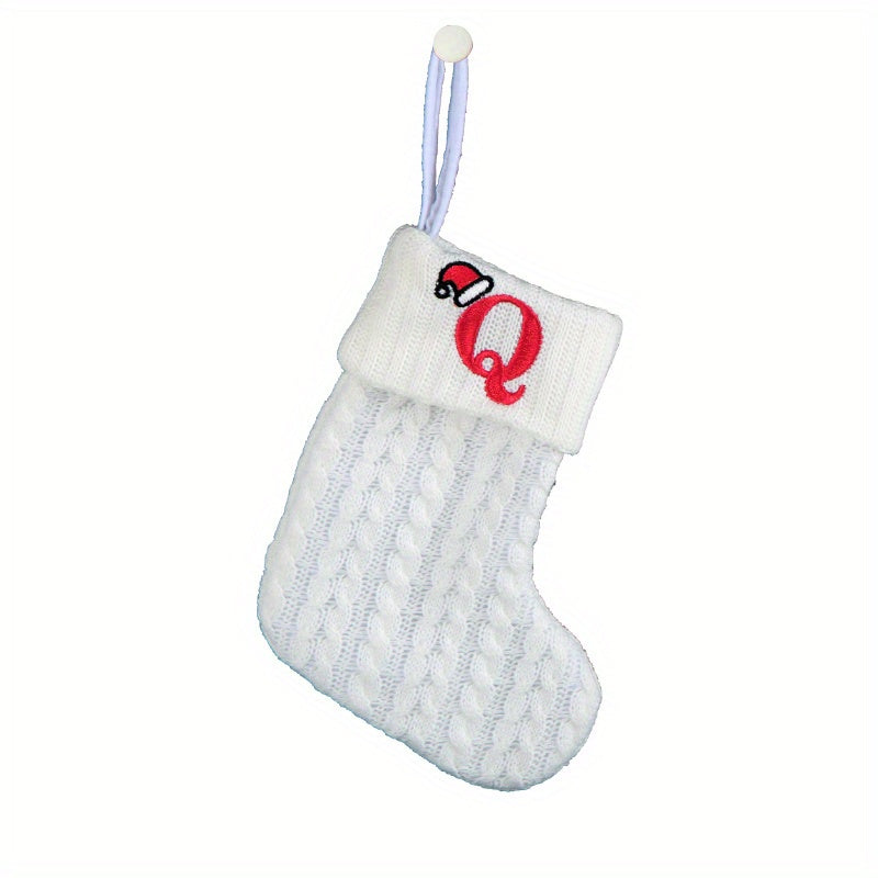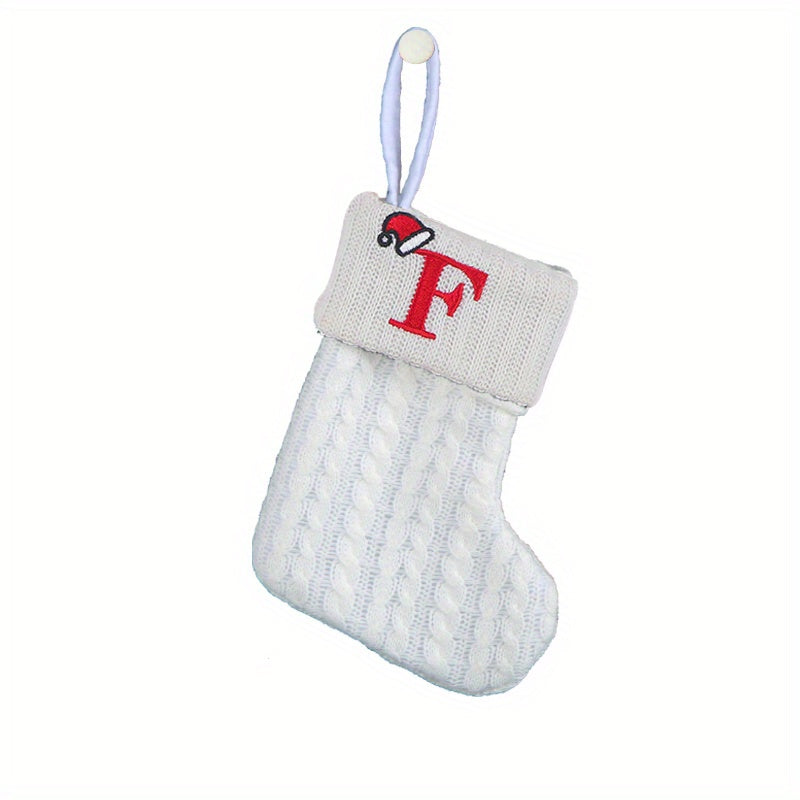Calcetín de punto de cable blanco con letra F bordada para decoración de interior