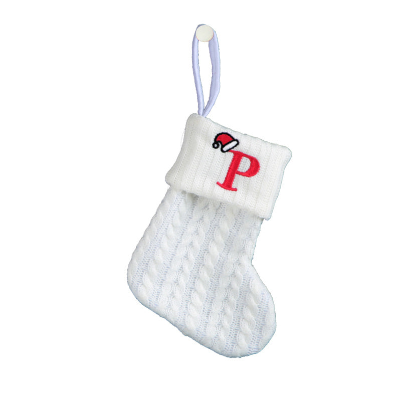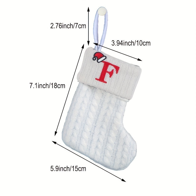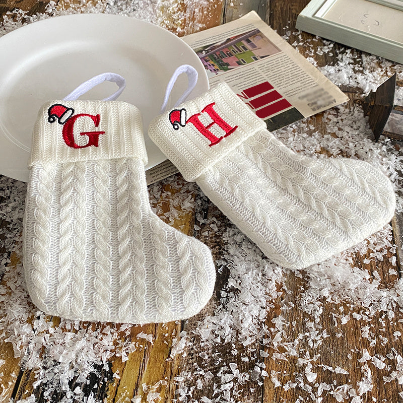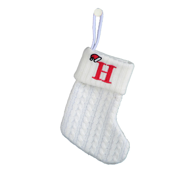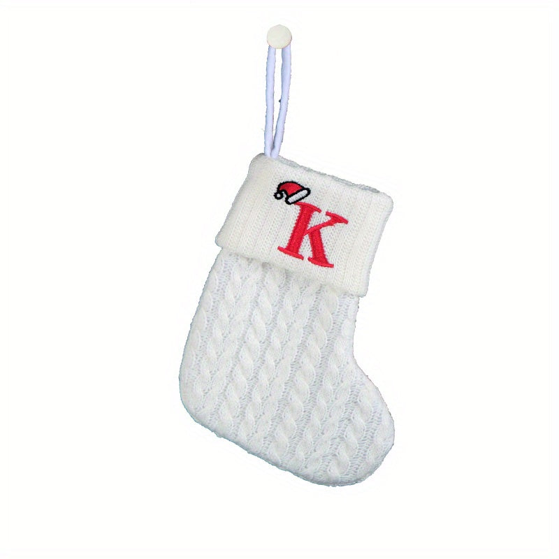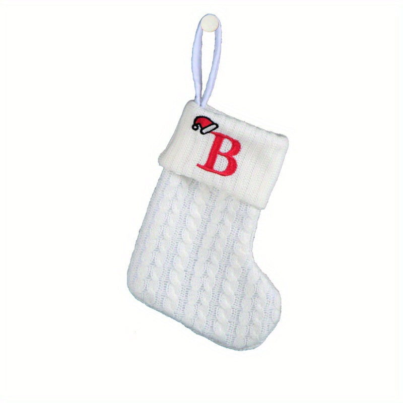 Calcetín de punto de cable blanco con letra F bordada para decoración de interior