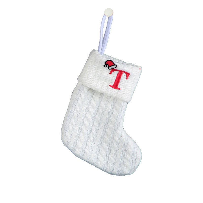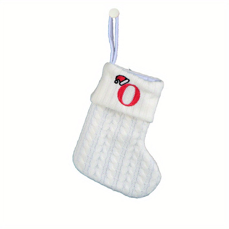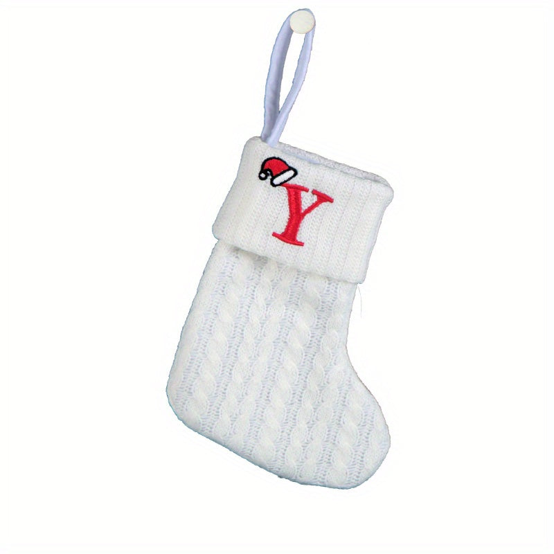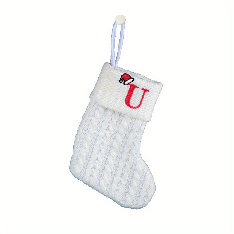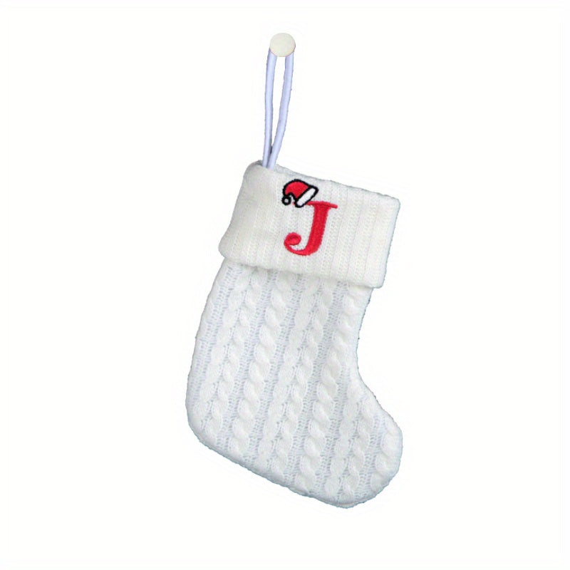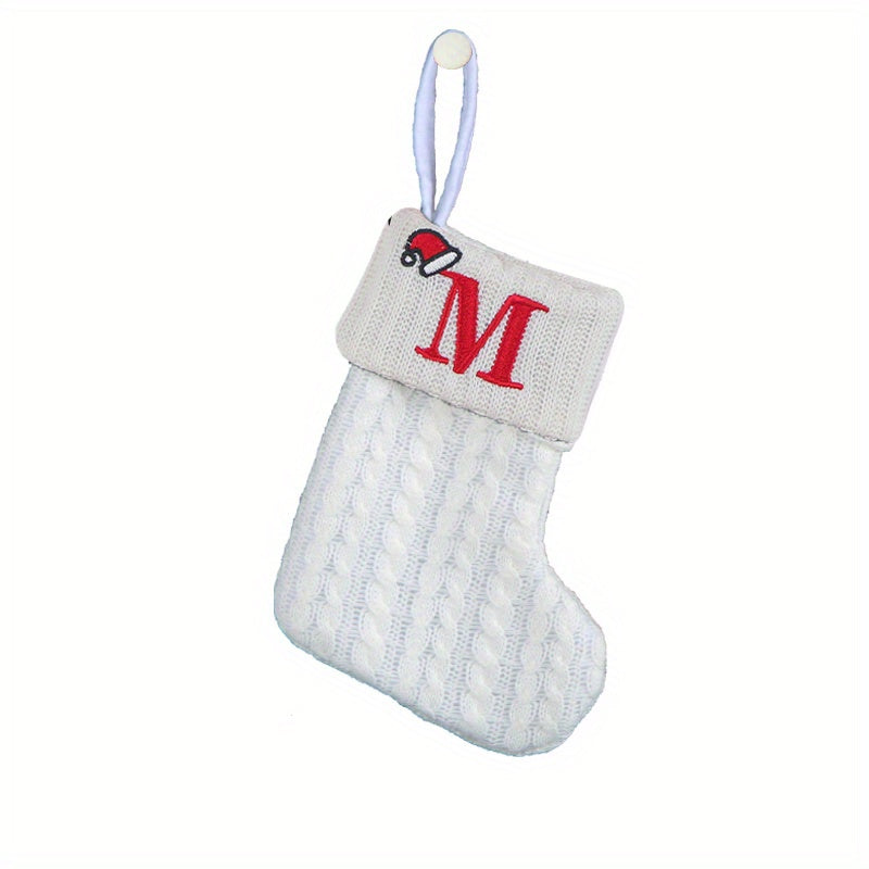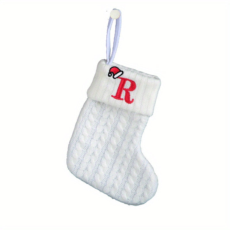 Calcetín de punto de cable blanco con letra F bordada para decoración de interior