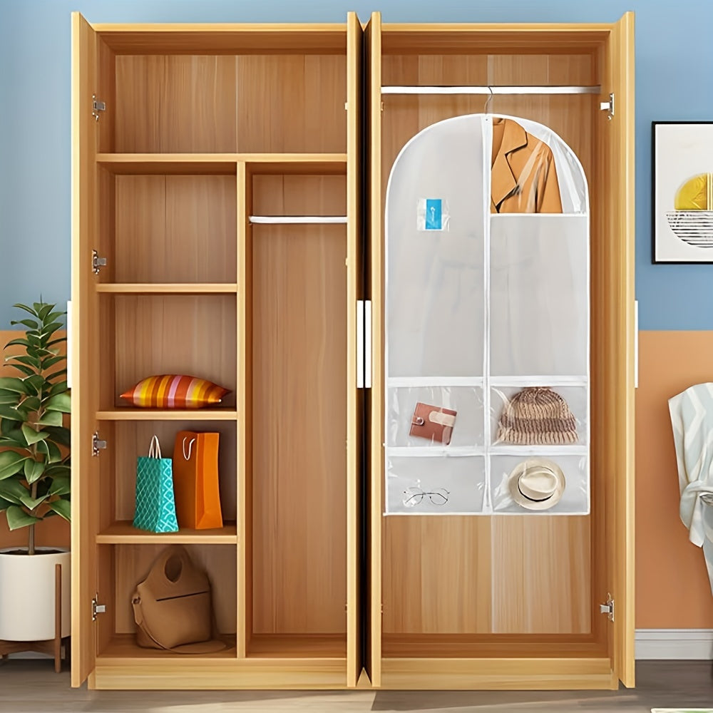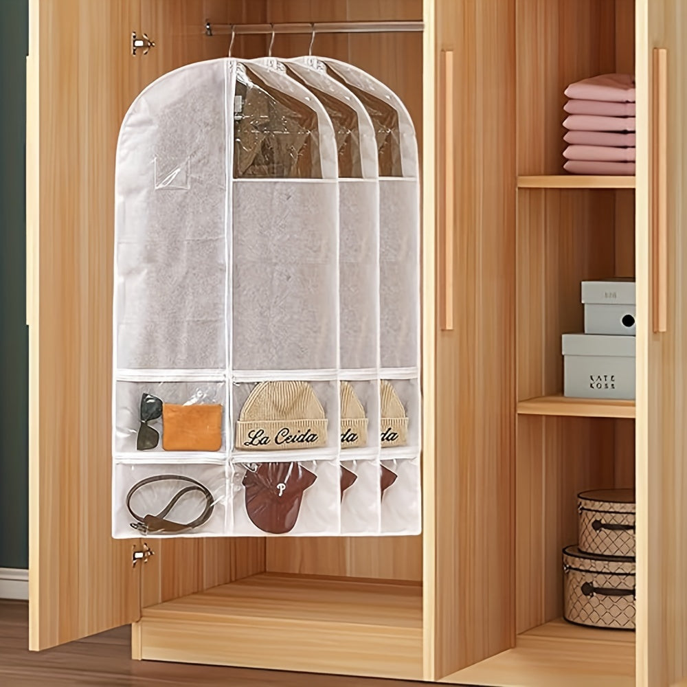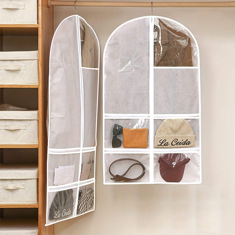 Funda de traje plegable blanca con múltiples bolsillos, bolsa de ropa a prueba de polvo para viajes y almacenamiento