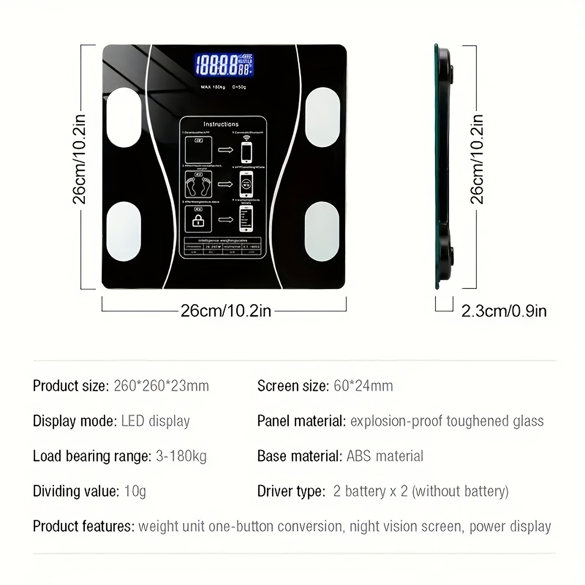 Báscula de peso Wi-Fi con pantalla LED y monitor de temperatura para fitness y dieta en casa