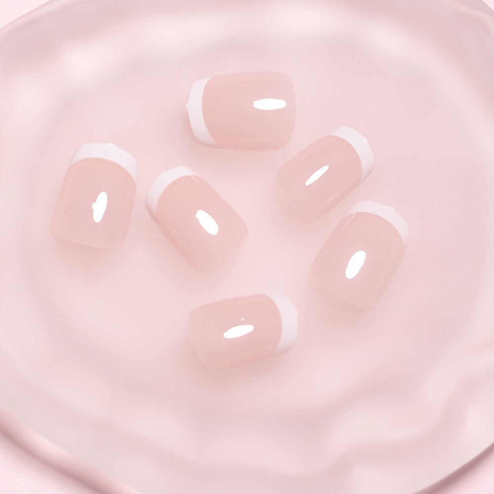Mujeres 24Piezas Rosa Nude Uñas Postizas Cuadradas Coffin Brillantes Reutilizables