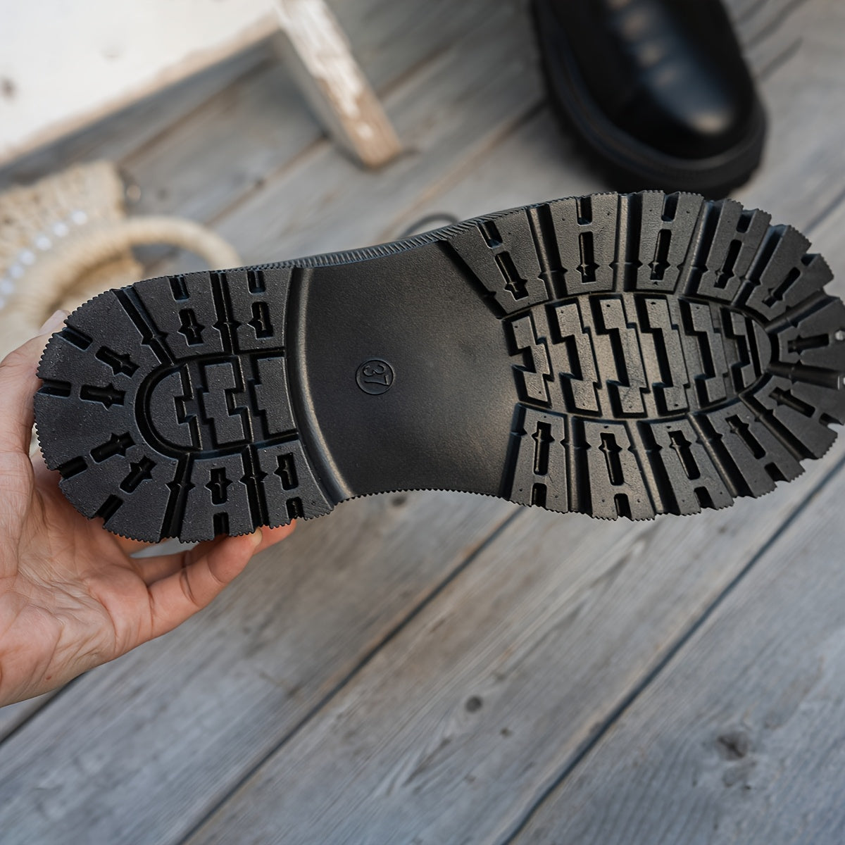 Women Chunky Platform Boots Leather Mid-Calf Non-Slip Sole All-Season