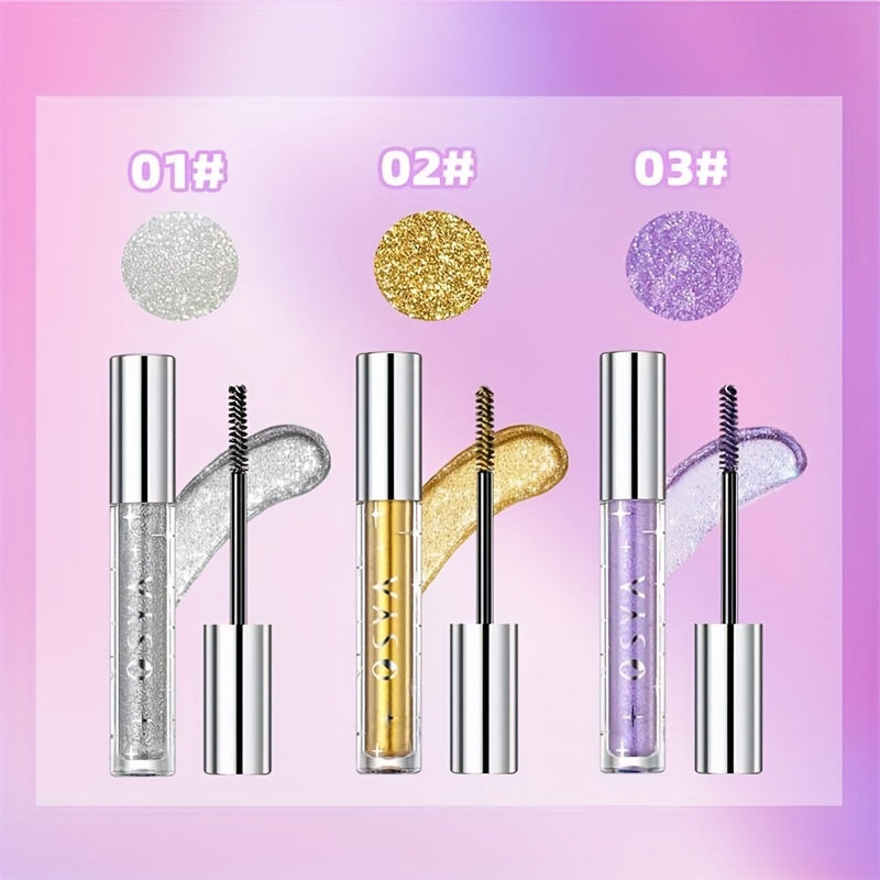 Máscara de pestañas a prueba de agua con purpurina para mujer, rizada y alargadora, herramienta de maquillaje