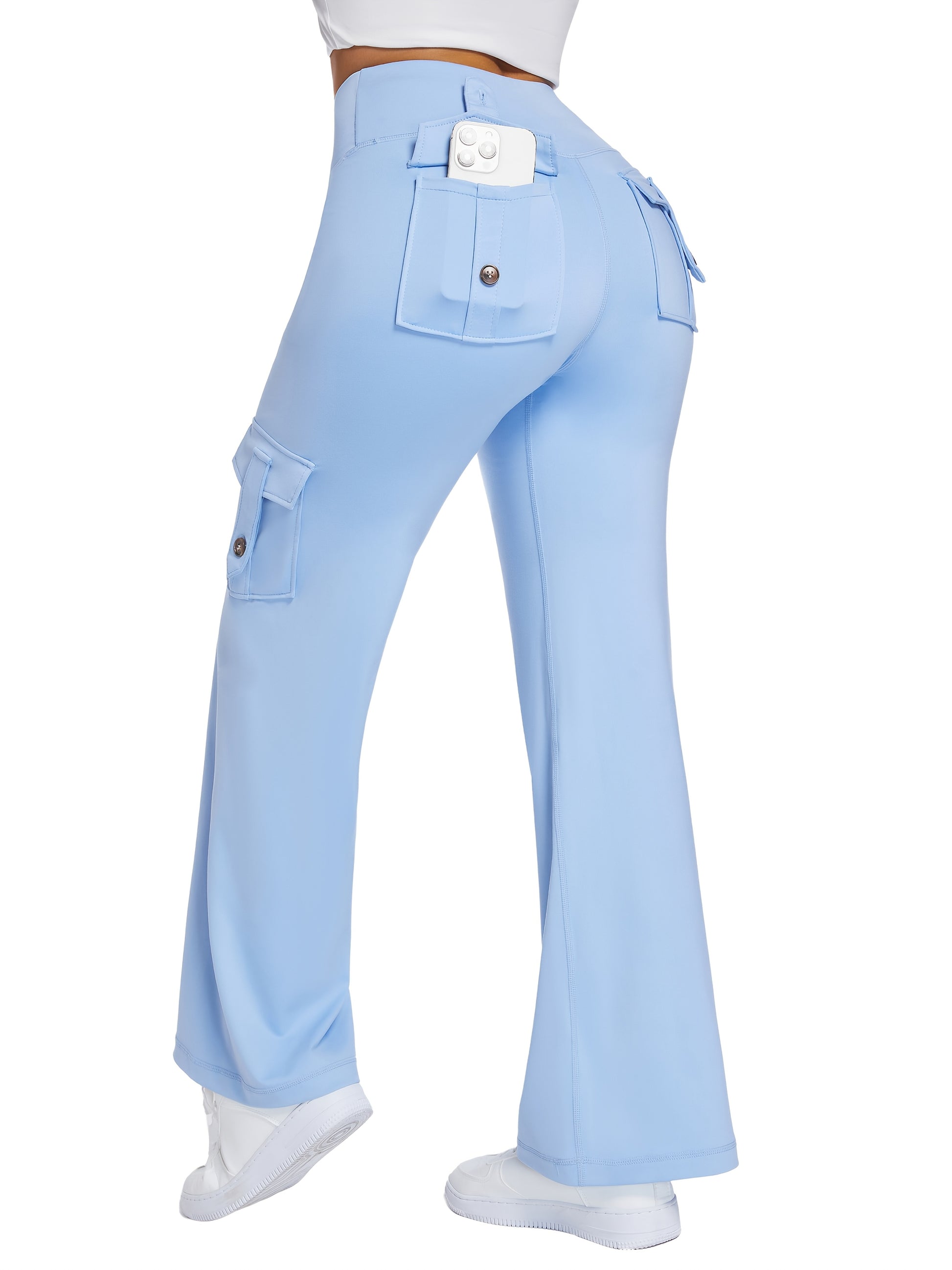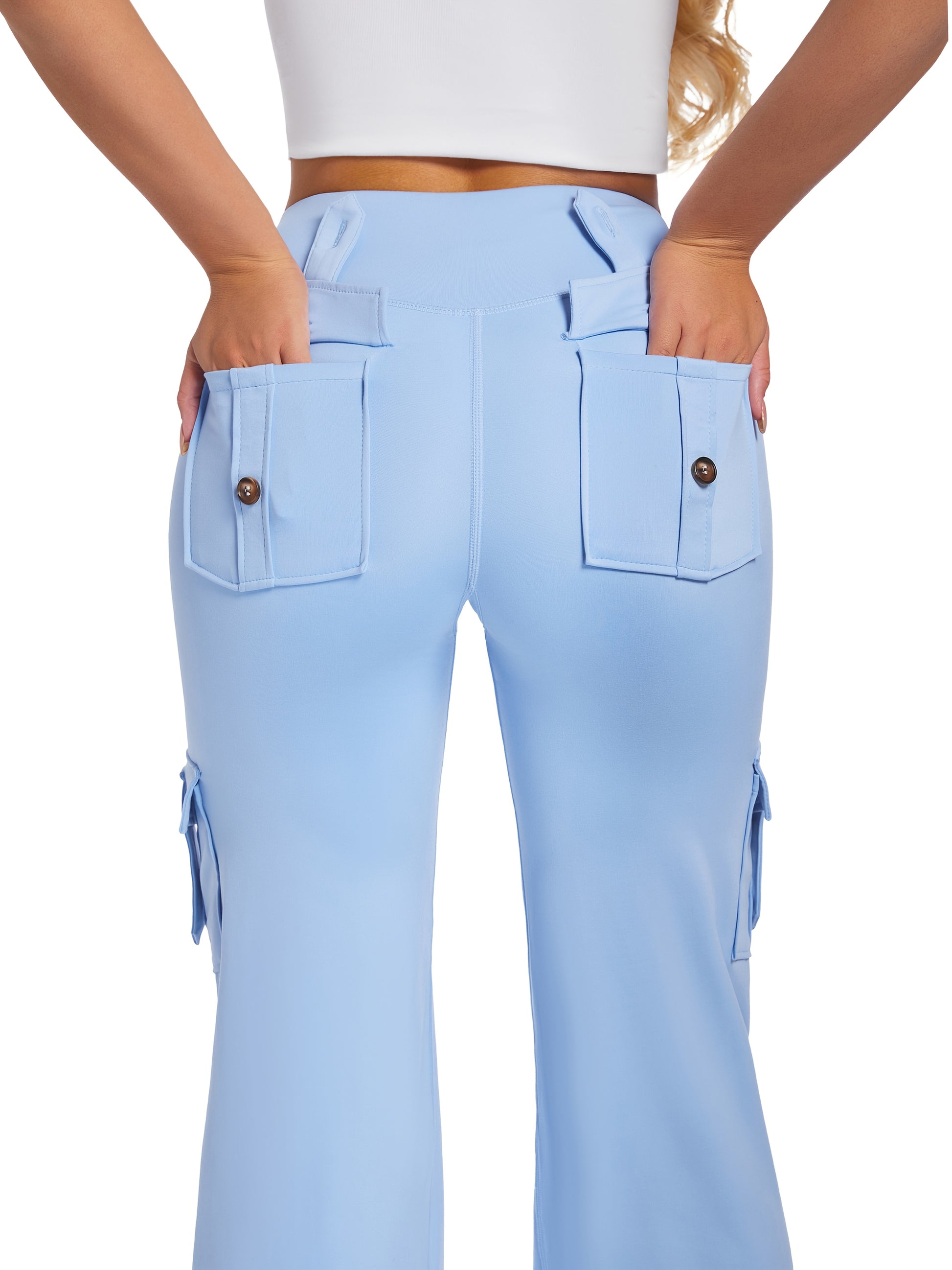 Pantalones de yoga de cintura alta con bolsillos cargo para mujer, talla plus, transpirables y con estiramiento