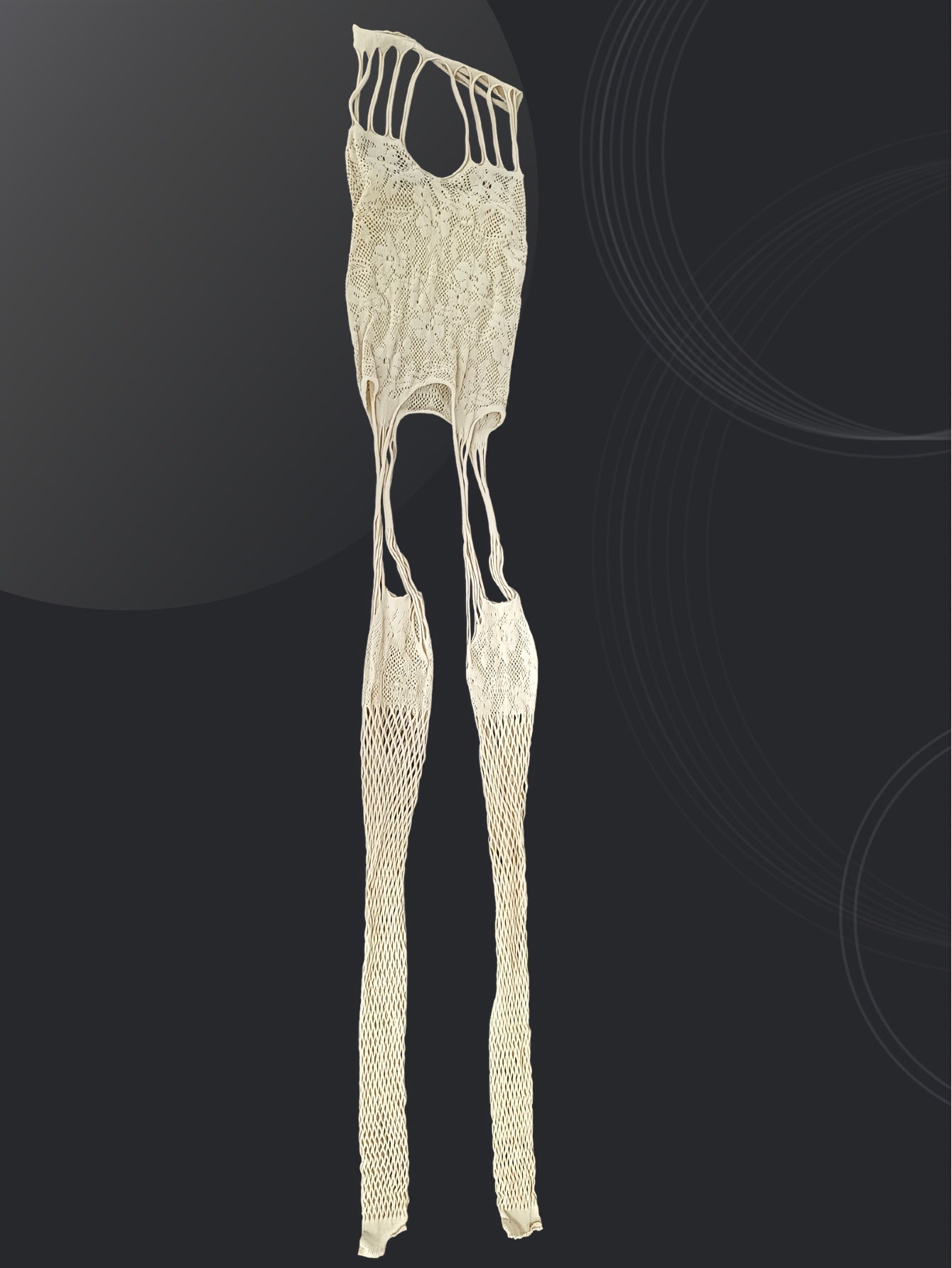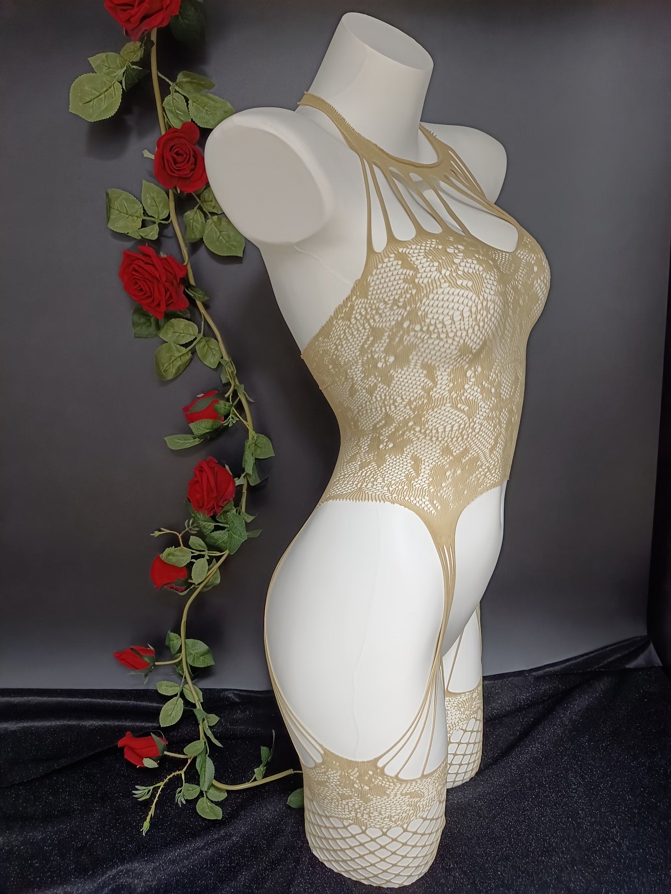 Body de lencería para mujer de jacquard con abertura en la entrepierna, medias de red y vestido con liga