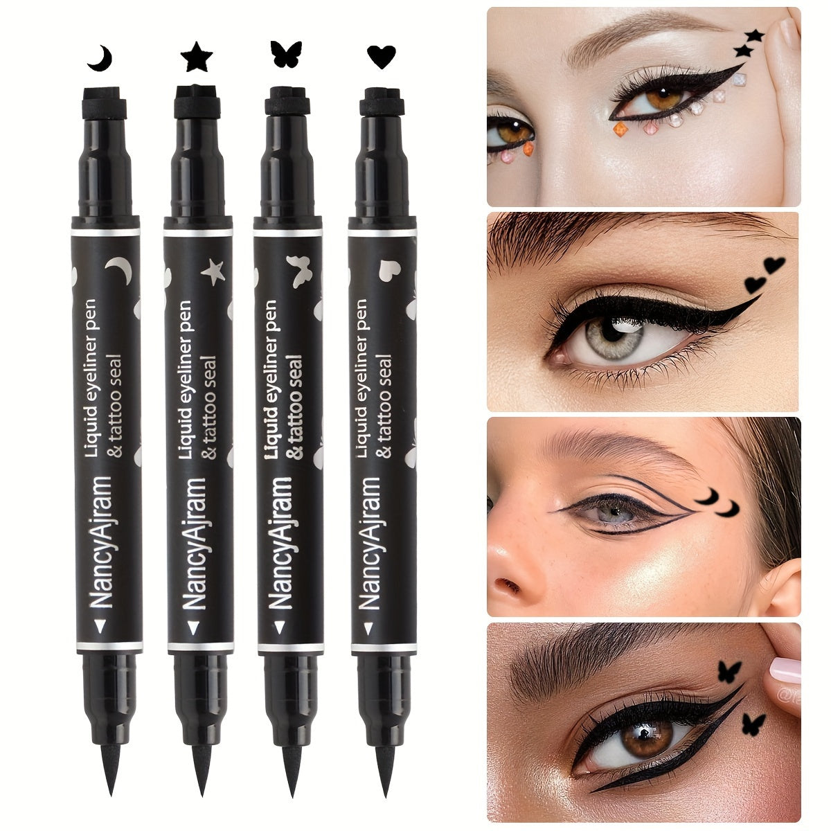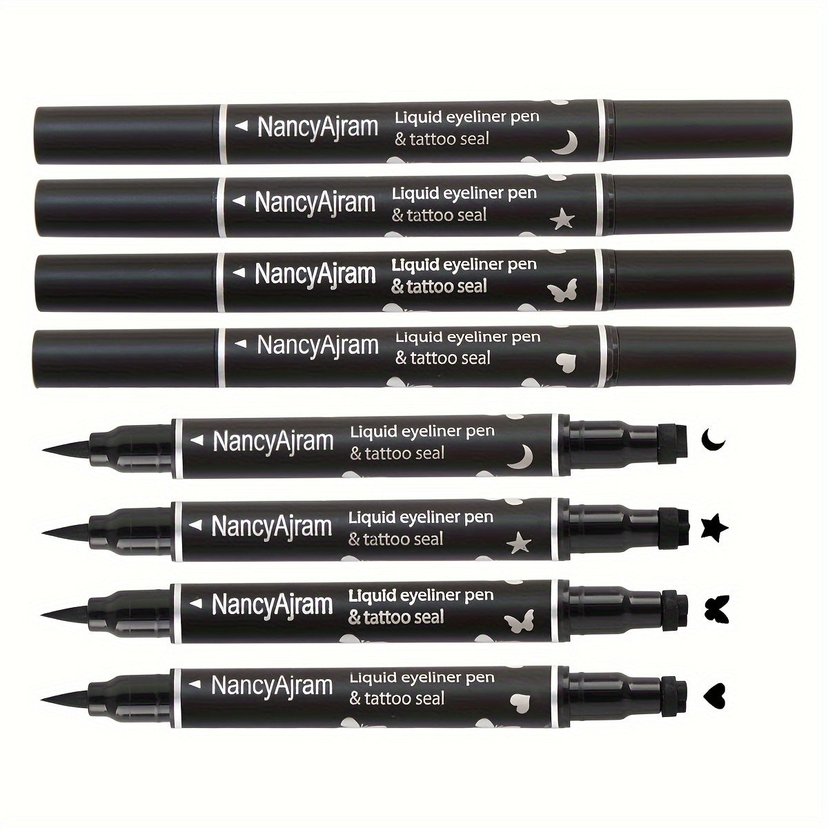 Set de bolígrafos delineadores líquidos para mujer, a prueba de agua y de larga duración, negro con formas de sello