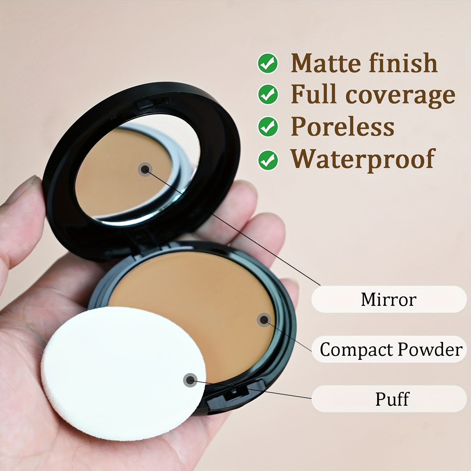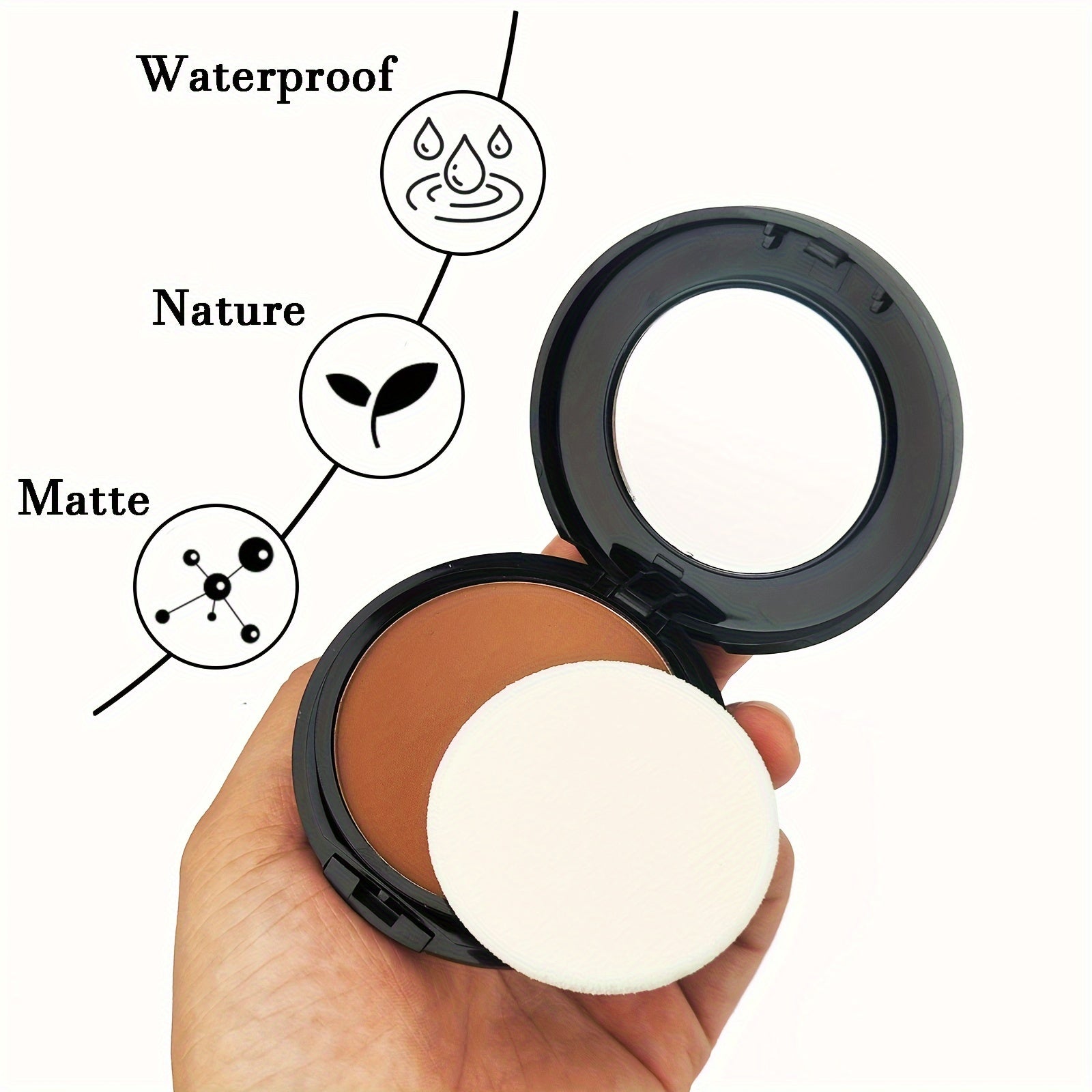 Polvo prensado mate para mujer, resistente al agua, cobertura total para piel oscura