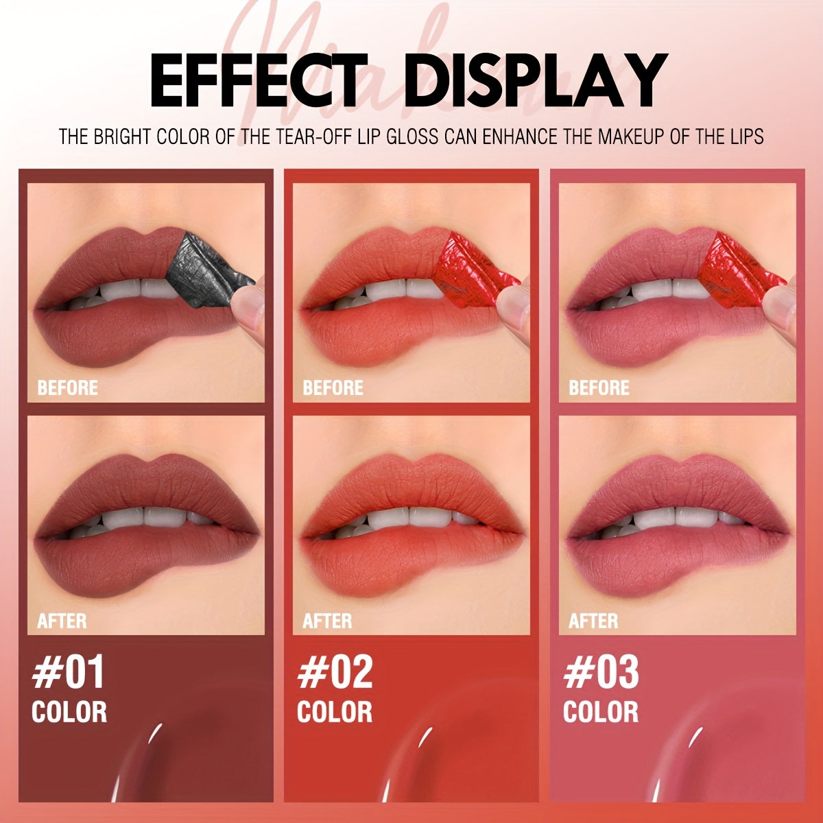 Brillo de labios con tatuaje peel-off para mujer, a prueba de agua, de larga duración, rosa baya y rojo