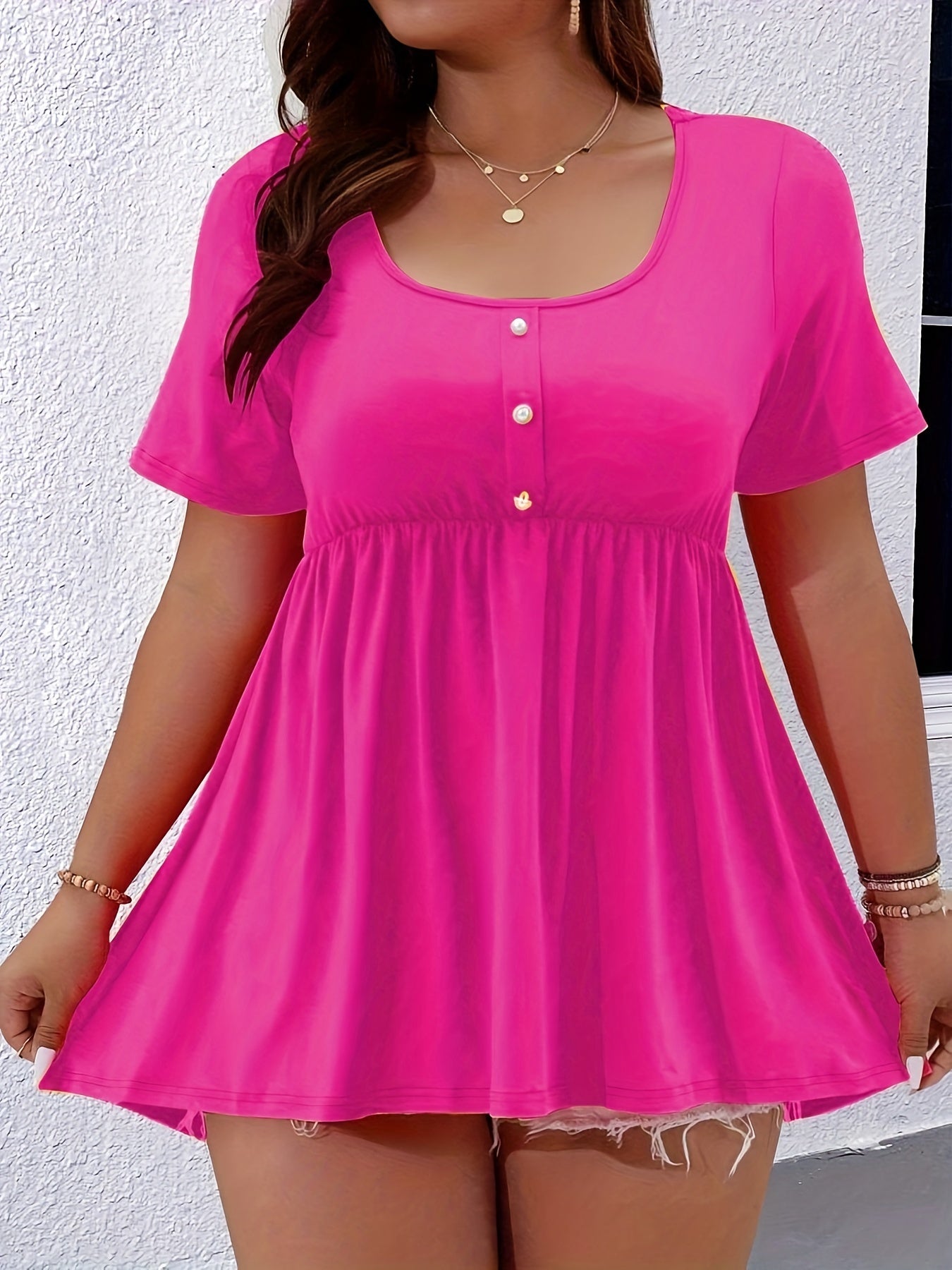 Mujer talla grande blusa de botones negra manga corta ropa casual de tela elástica