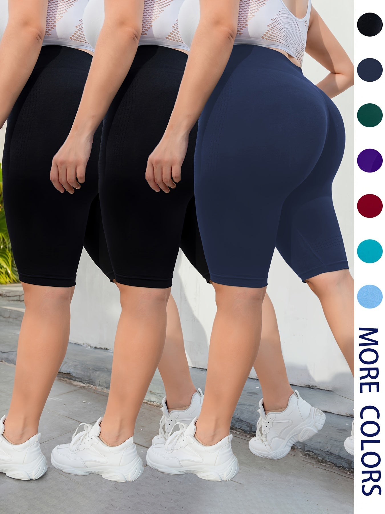Pantalones cortos de yoga para mujer talla plus de cintura alta con levantamiento de melocotón, pack de 3, elásticos para entrenamiento