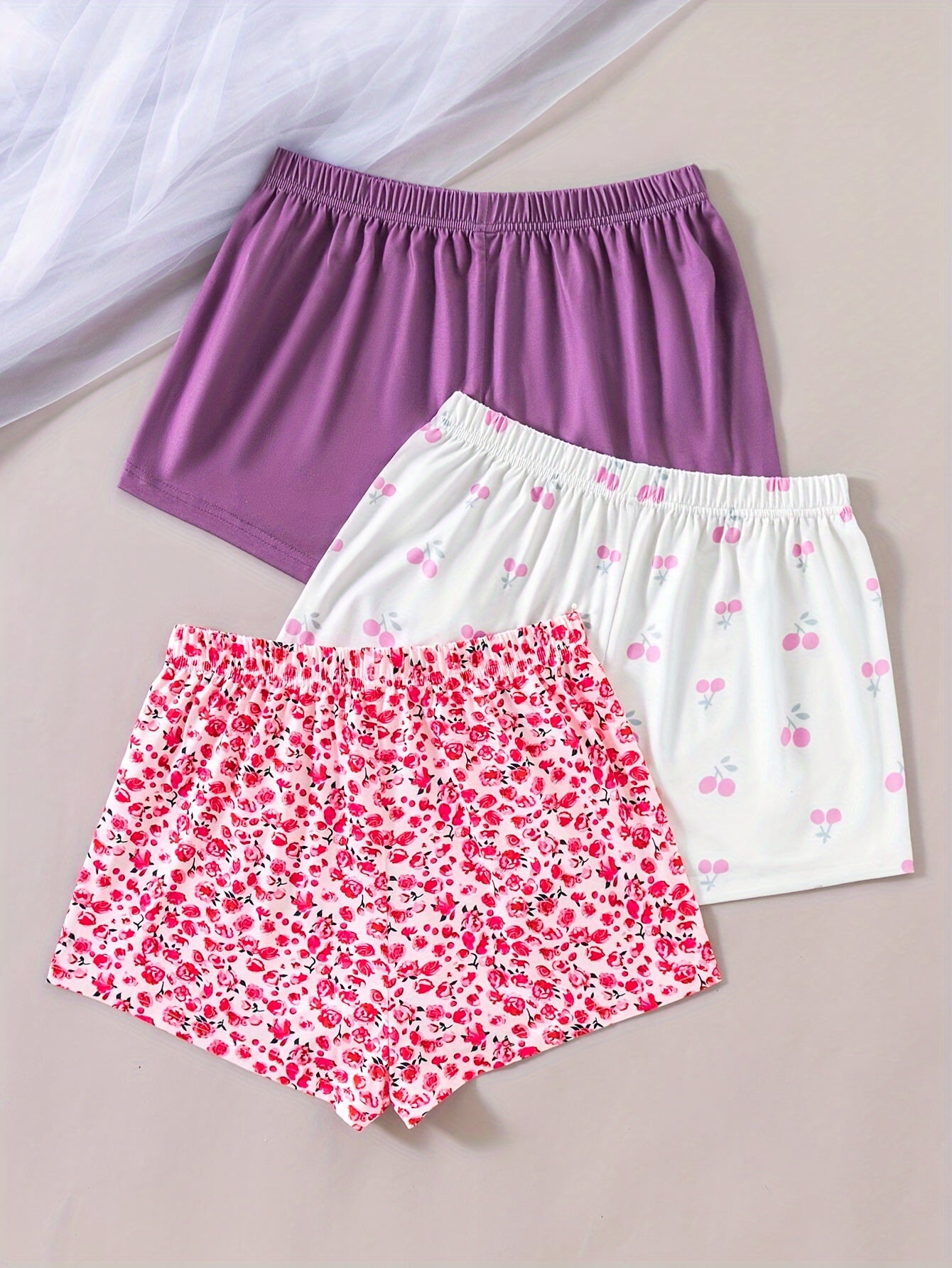 Conjunto de pantalones cortos de descanso para mujer con estampado floral, cinturilla elástica, lavable a máquina
