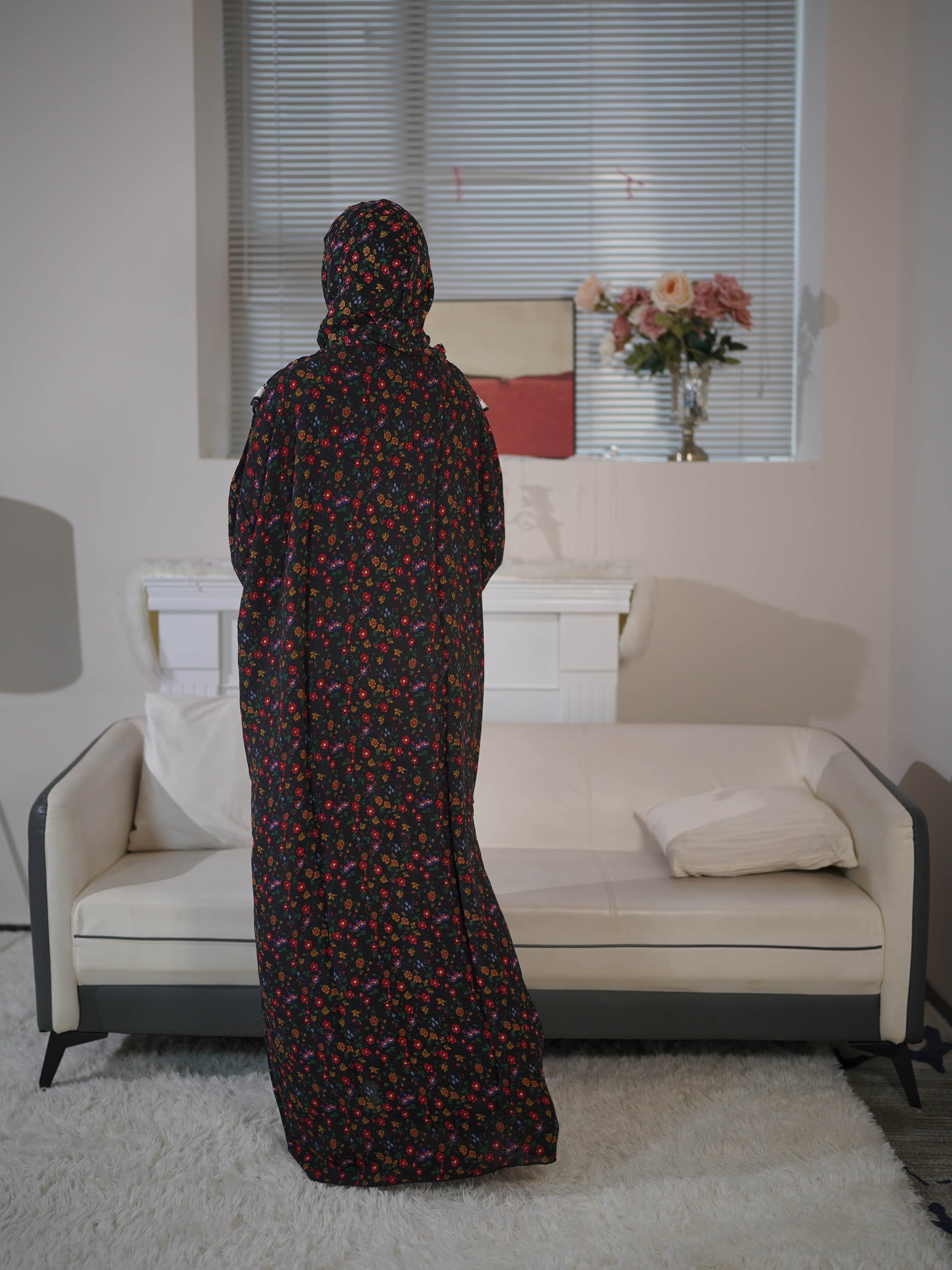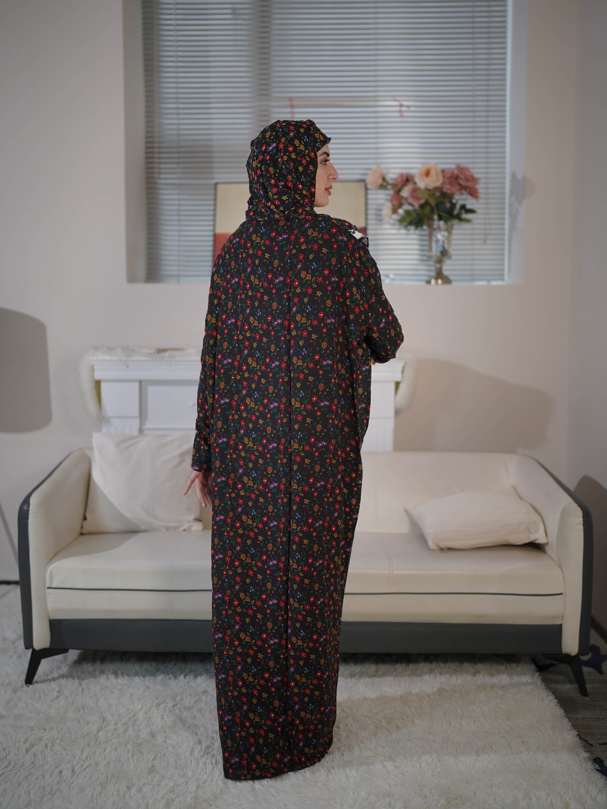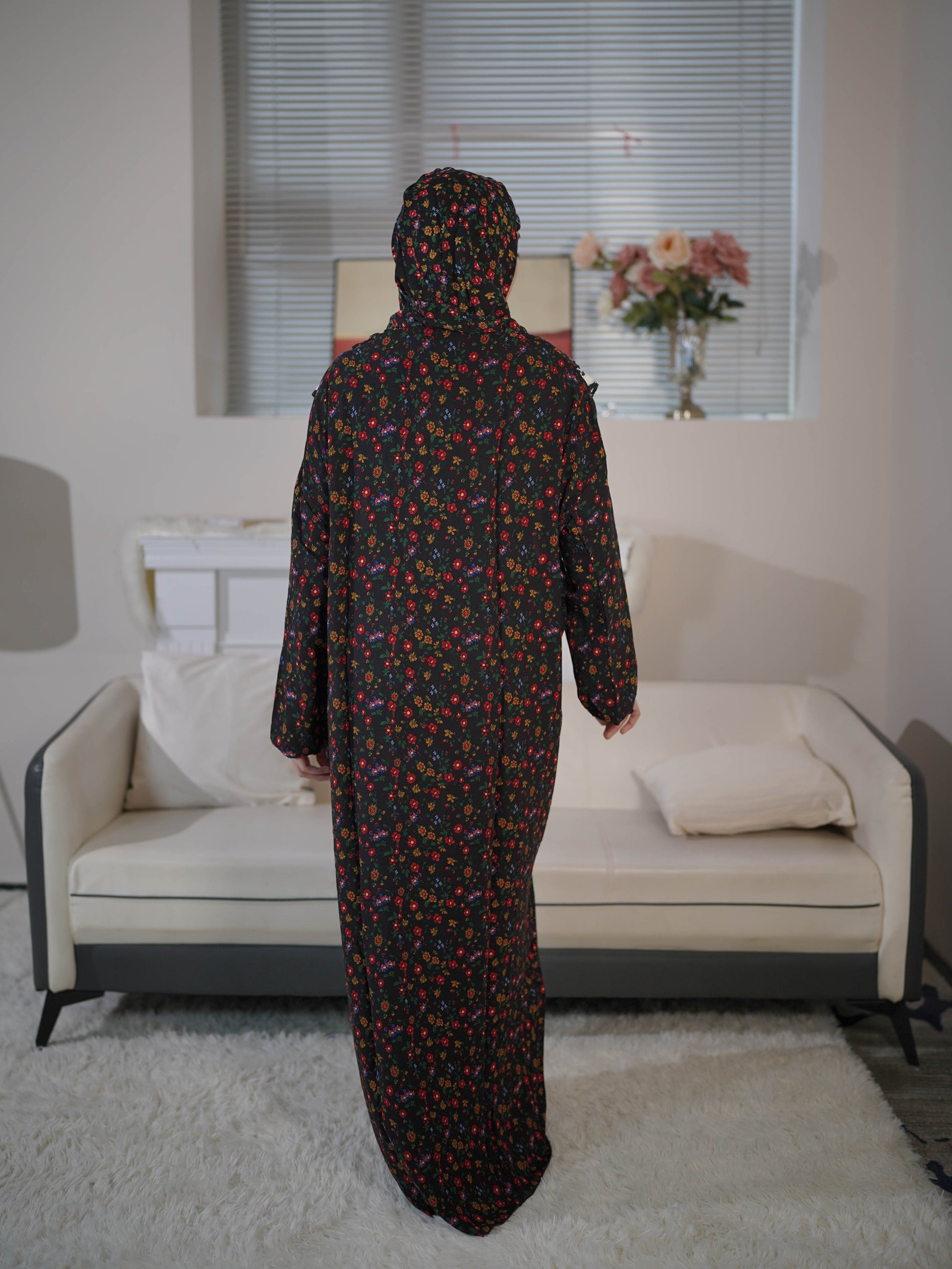 Vestido abaya para mujer, de rayón con estampado floral, con capucha, ropa modesta islámica para oración