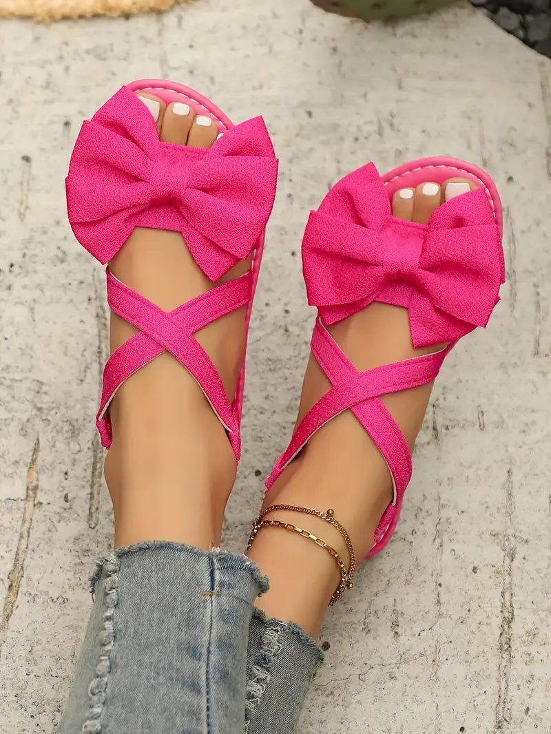Women’s Black Bowknot Flat Sandals Open-Toe Slip-On Summer Shoes