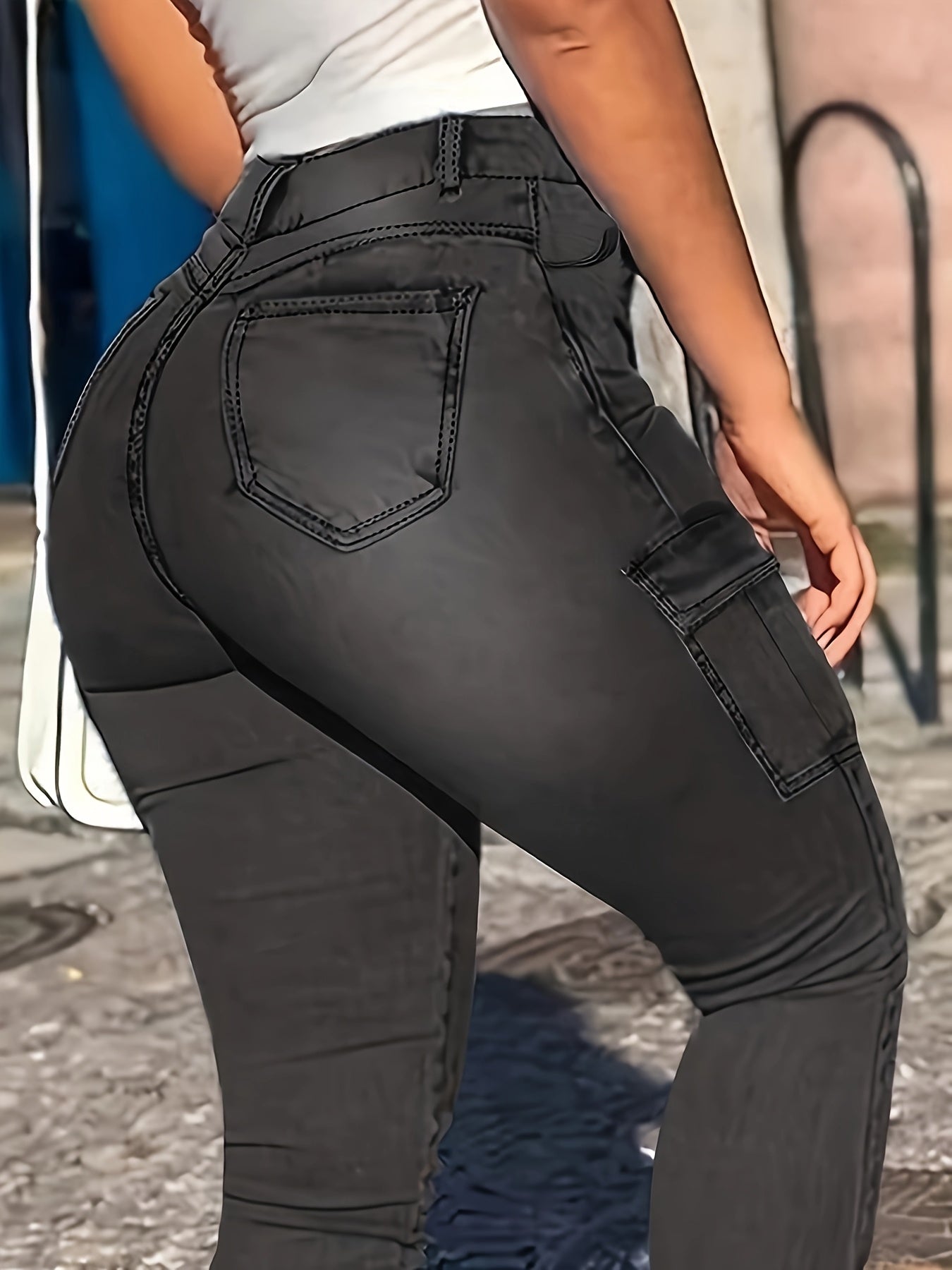 Pantalones de trabajo ajustados con control de barriga en negro para mujer, estilo pitillo con abertura en la bota, denim, talla grande