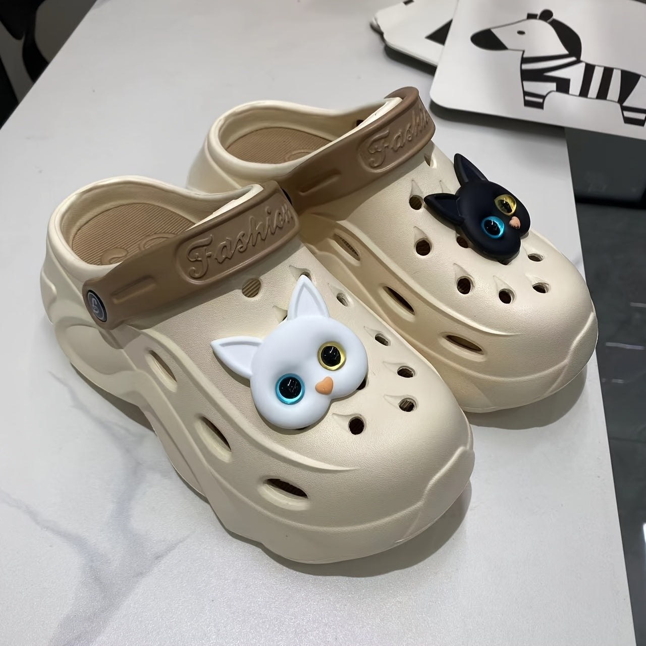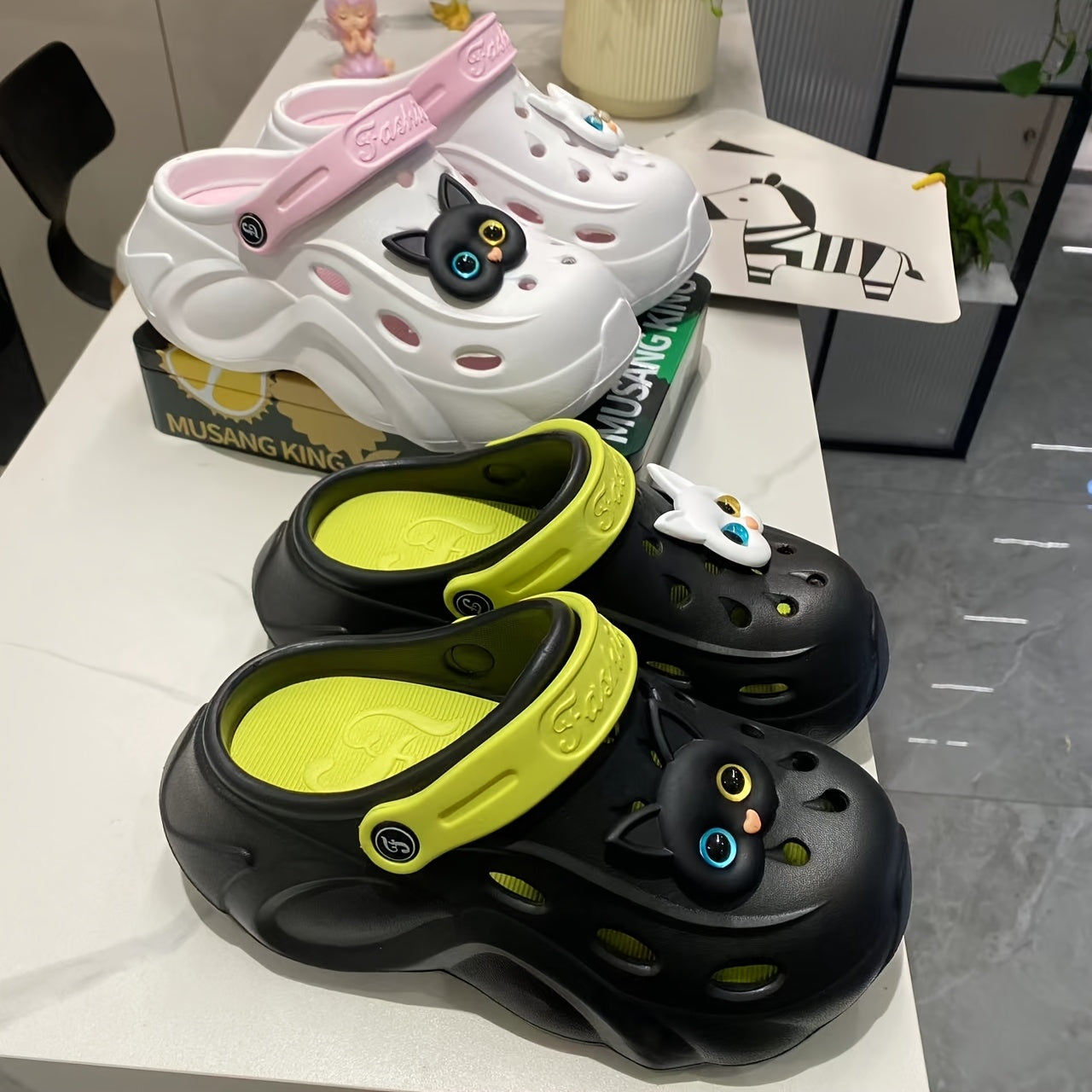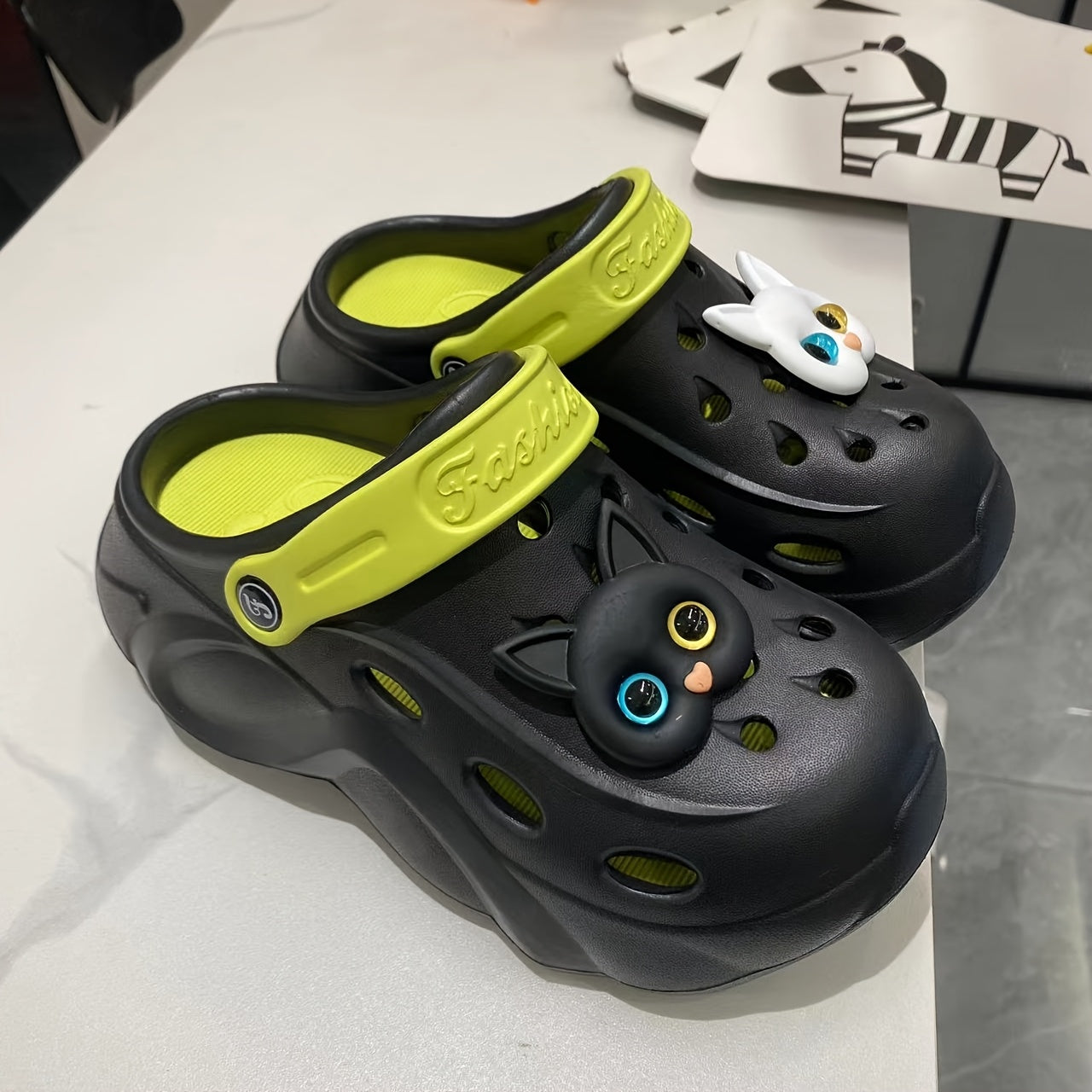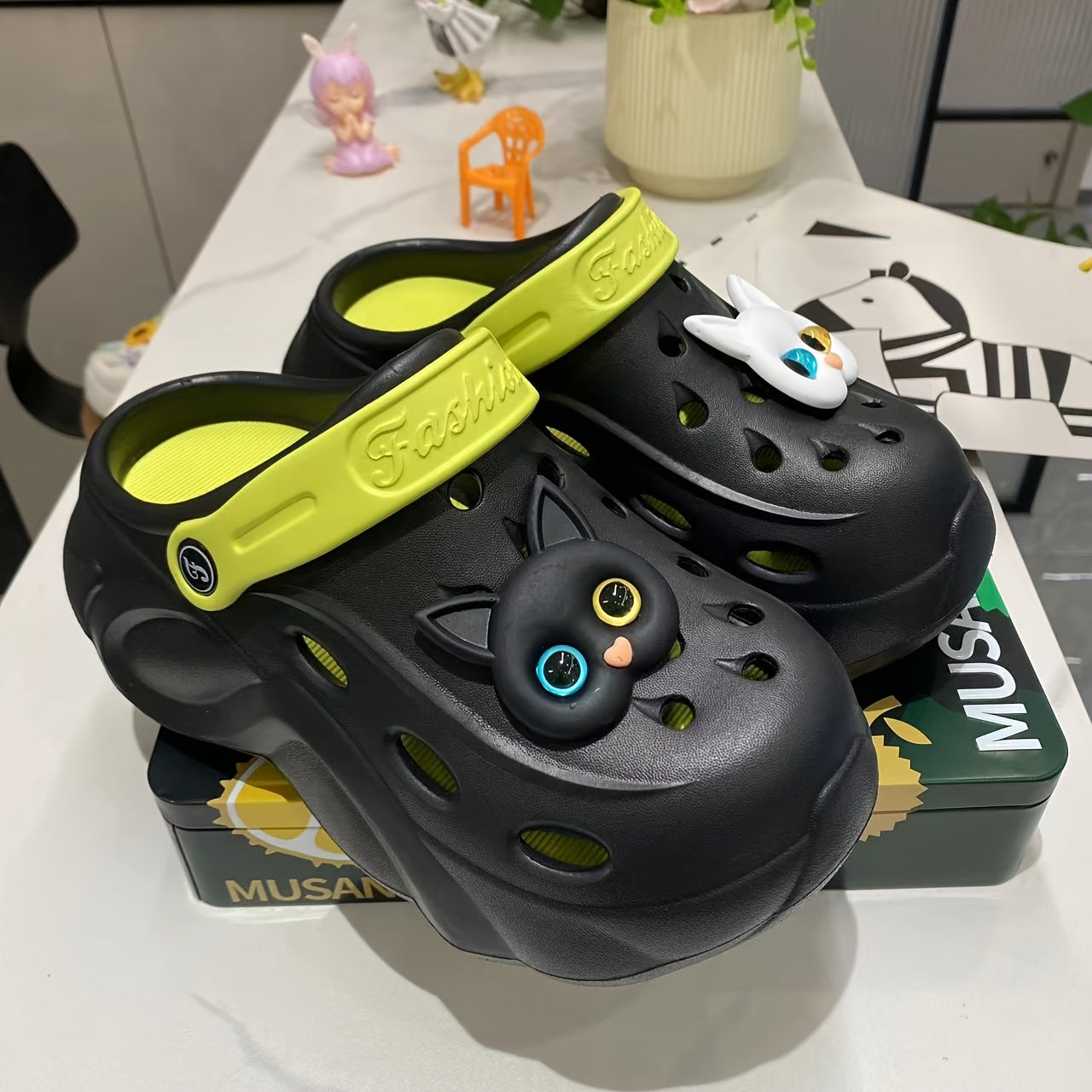 Women's Breathable EVA Hole Shoes Black and White Beach Sandals