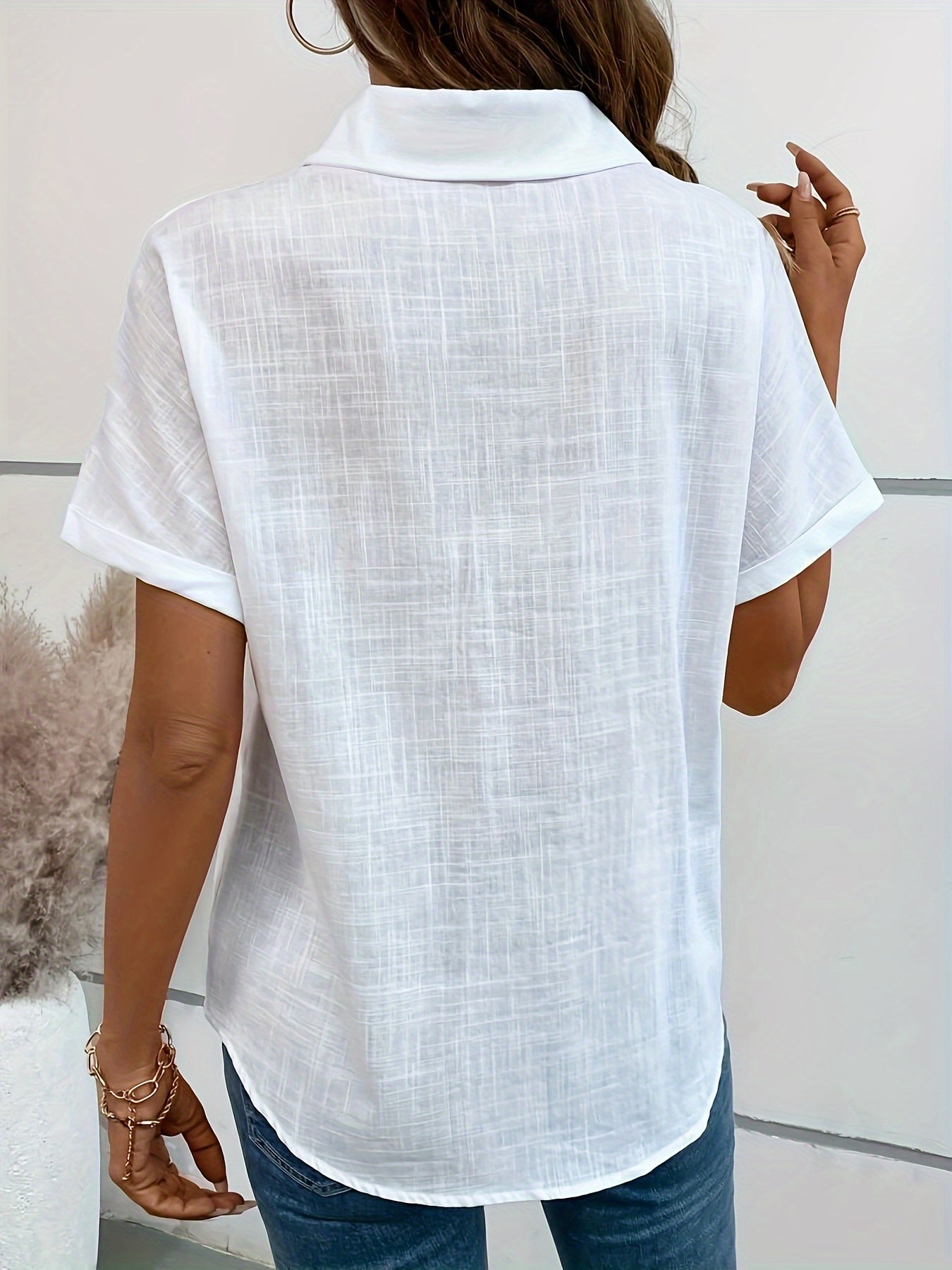 Blusa de algodón de manga corta para mujer con patrón de corazones, doble bolsillo, cuello con botones