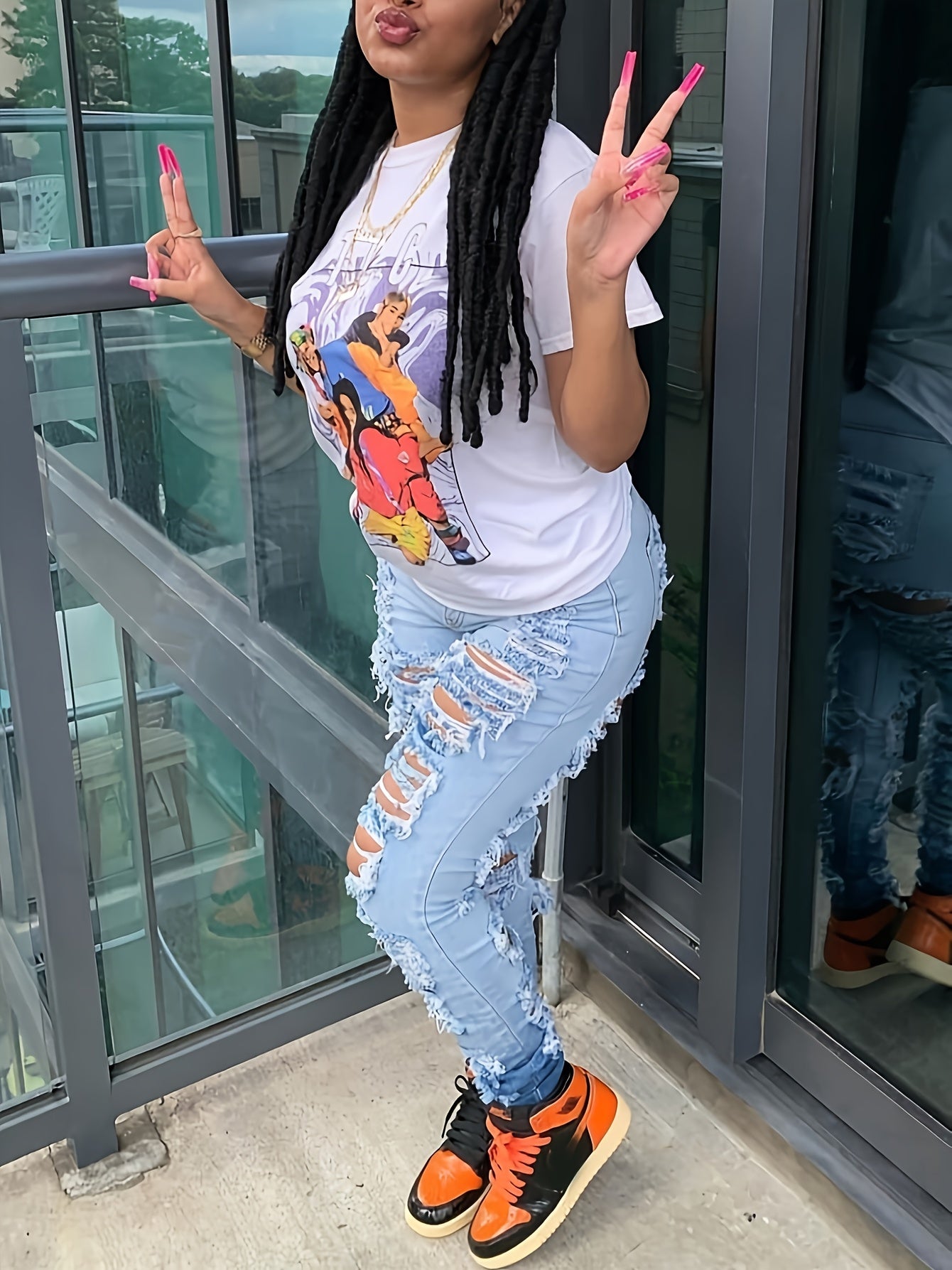 Jeans para mujer de corte casual ajustado, con alta elasticidad y talla grande, en color degradado