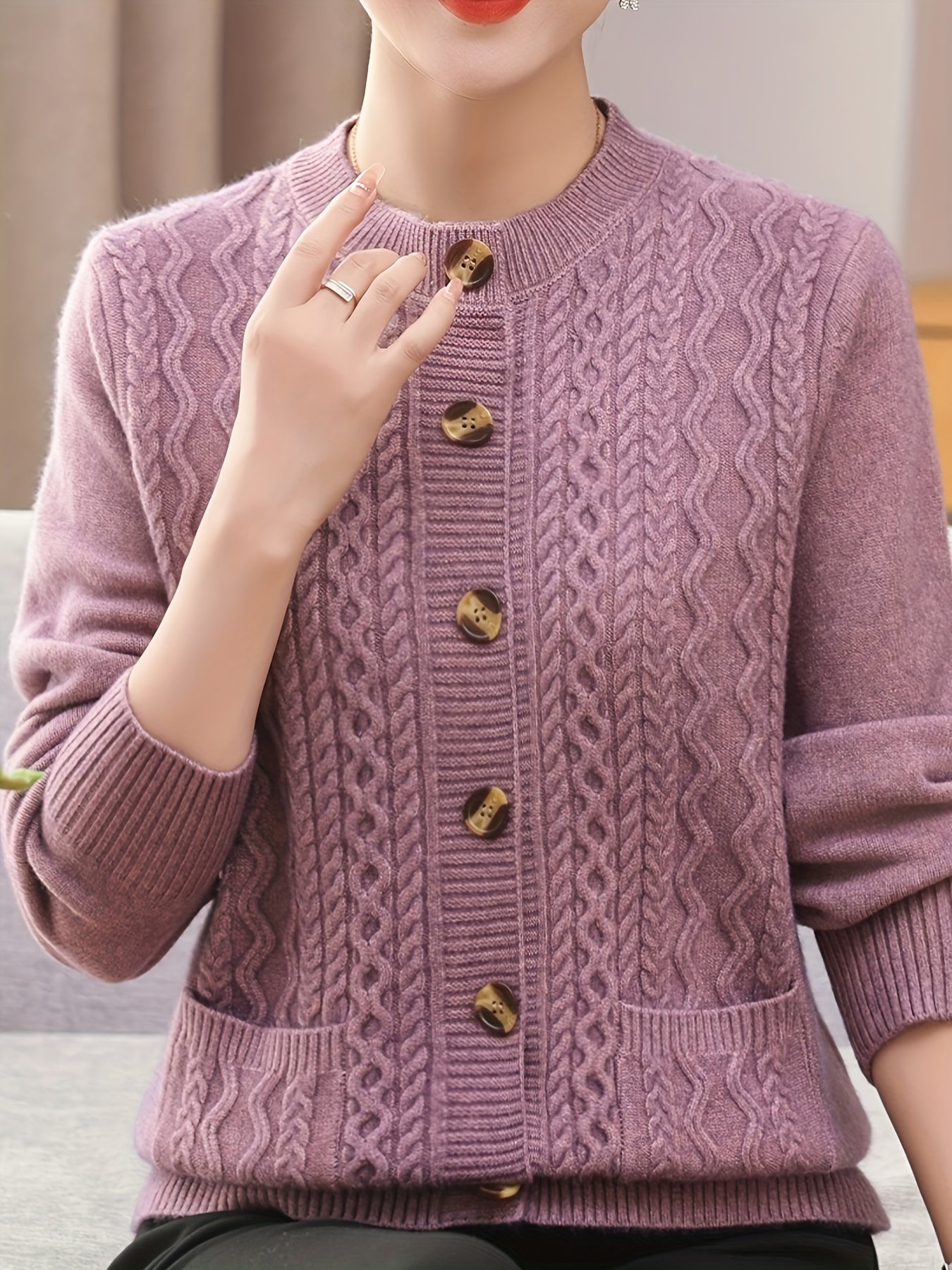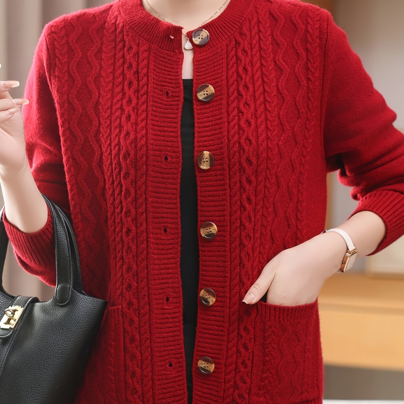 Cárdigan de punto cable para mujer con botones en la parte delantera, mangas largas, bolsillos, casual, para todas las estaciones