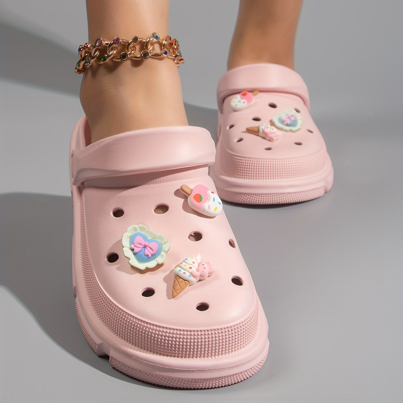 Zapatillas de EVA con estampado de dibujos animados para mujer, con punta redonda, transpirables, para verano, slip-on