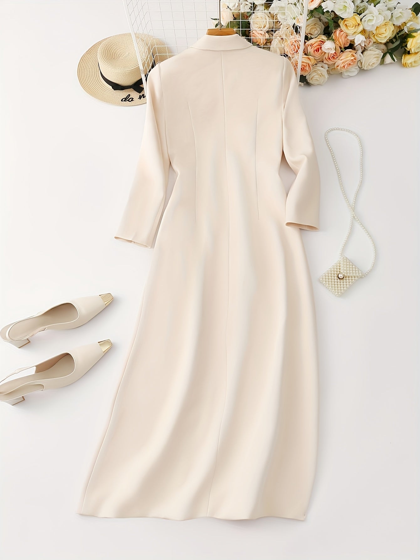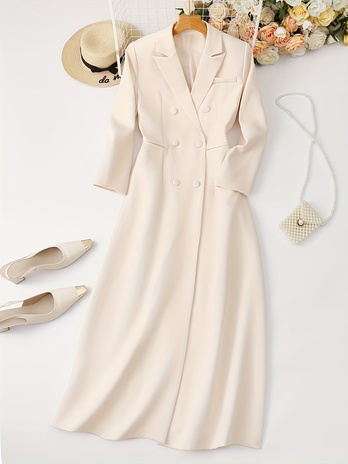 Blazer de color sólido para mujer, chaqueta de traje de doble botonadura, manga larga, poliéster, para negocios y ropa formal