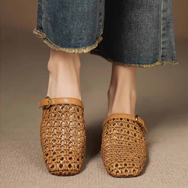 Women's Faux Leather Roman Slip-On Shoes with Chunky Heel and Non-Slip Sole