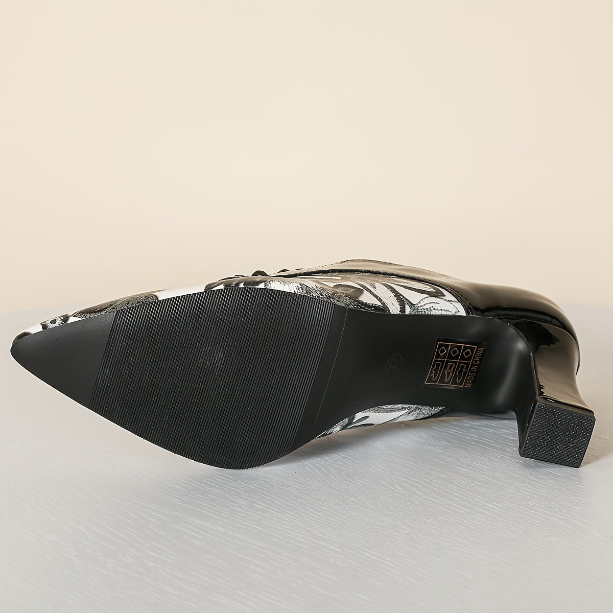 Women's Floral Brogue Mary Jane Pumps Pointed Toe Block Heel