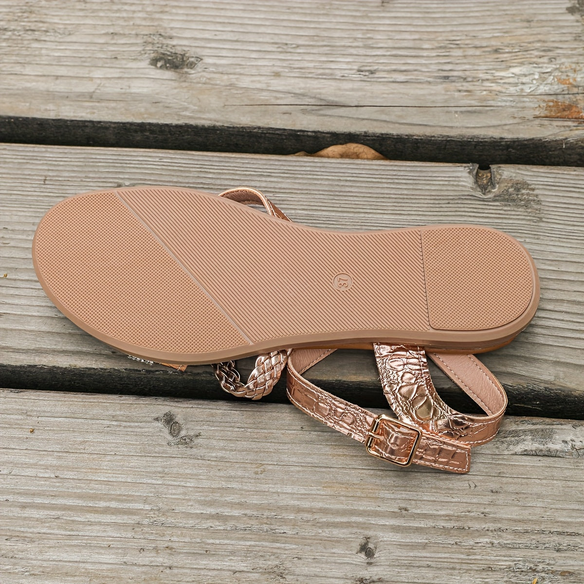 Women's Gladiator Sandals Silver Metallic Straps Rhinestone Flat Footwear
