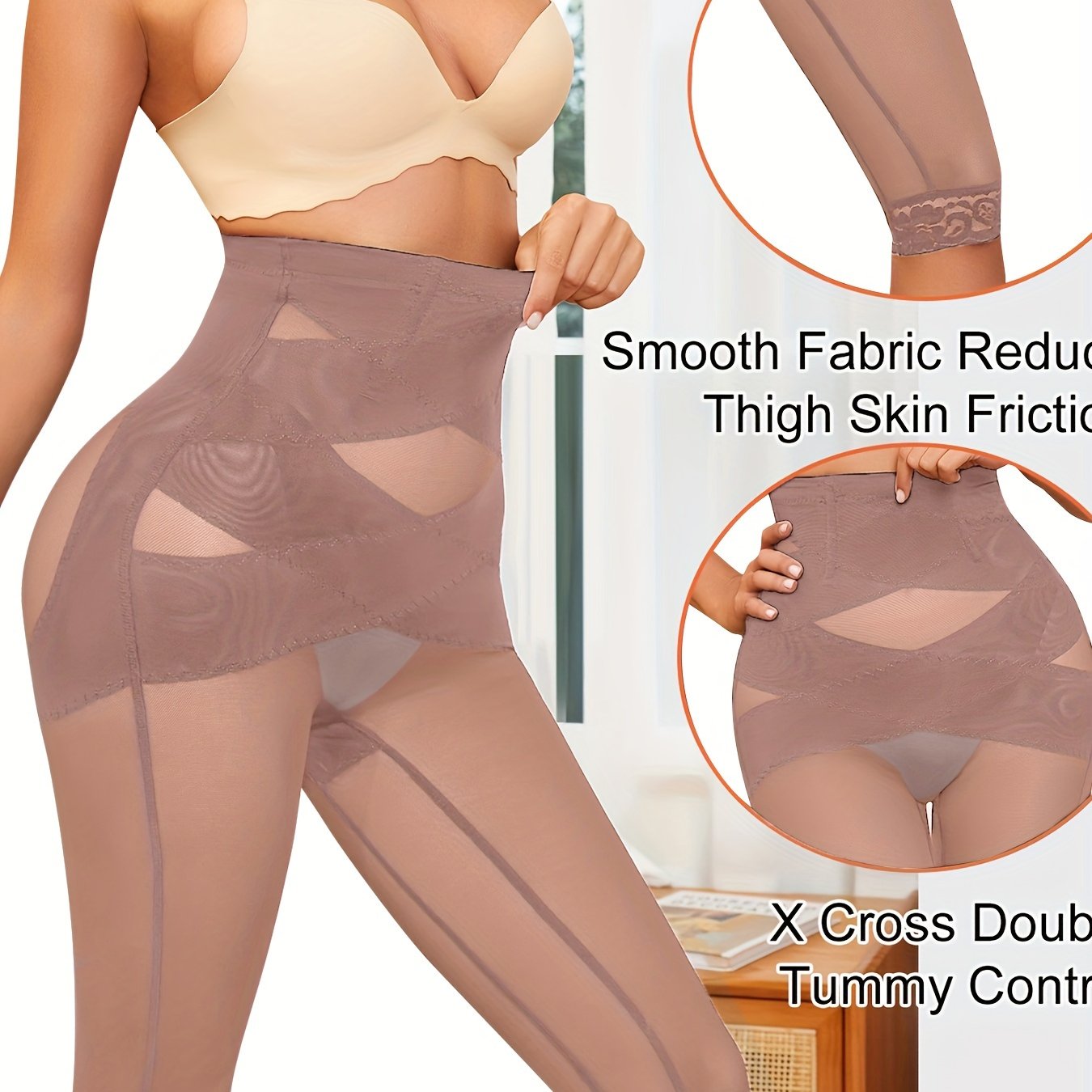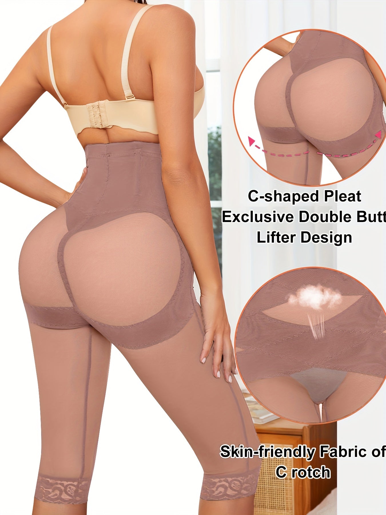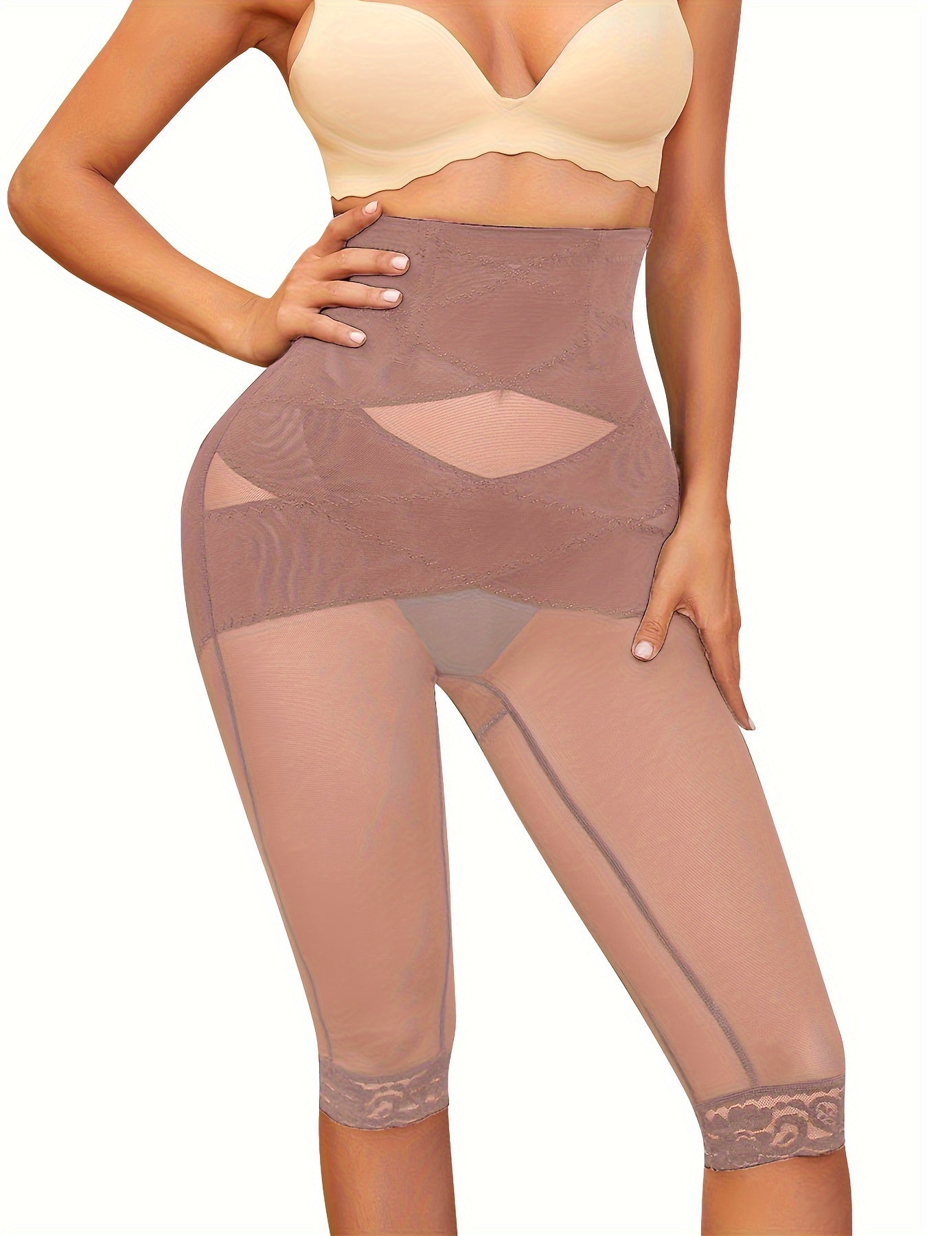 Pantalones moldeadores de cintura alta para mujer con diseño de encaje semi-transparente que levanta las glúteos para uso diario