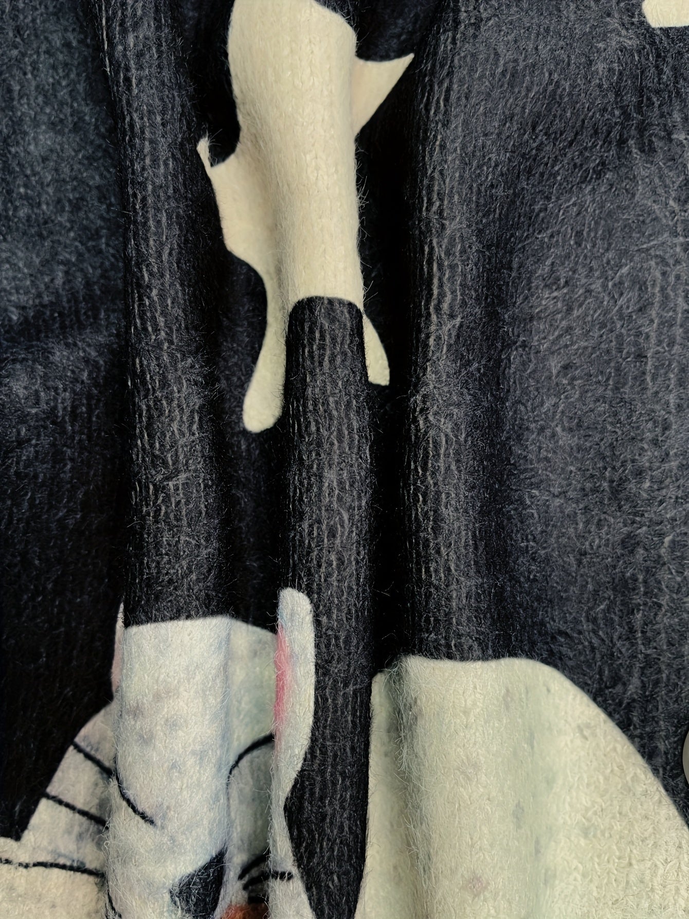 Cárdigan de efecto punto para mujer con estampado y cuello en V oversize