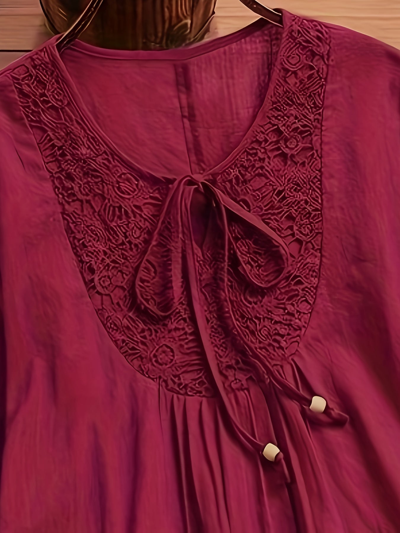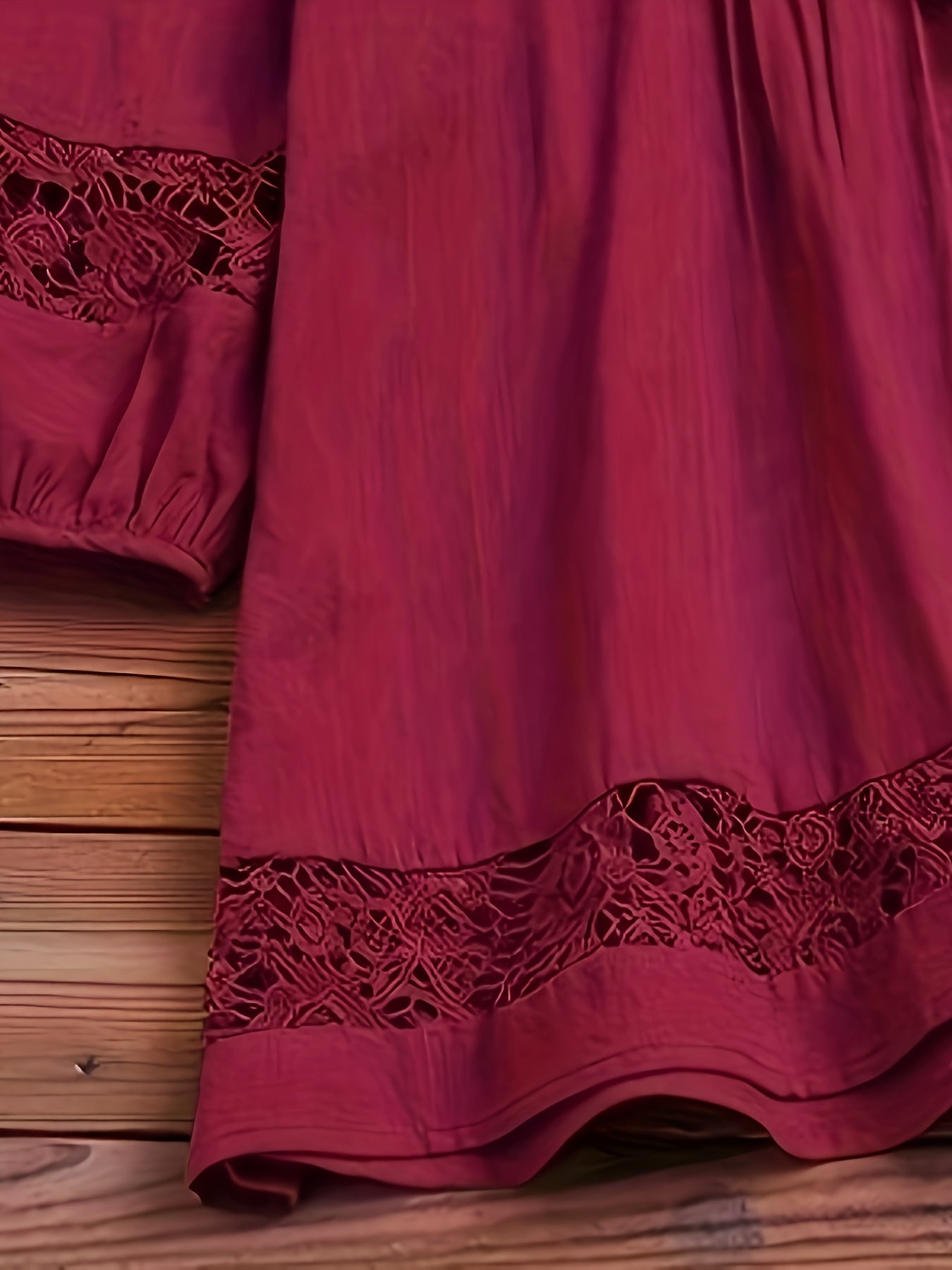 Top de encaje de mezcla de algodón para mujer, cuello redondo, liso, casual, primavera, otoño