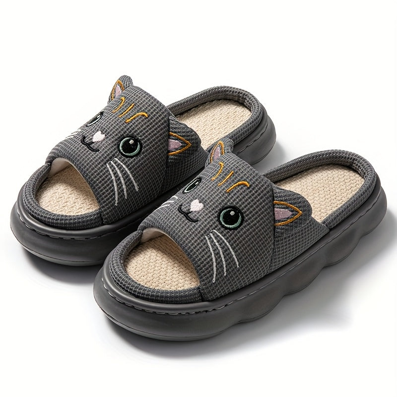 Women's Open-Toe Slippers Comfortable Cartoon Kittens Non-Slip Indoor Shoes