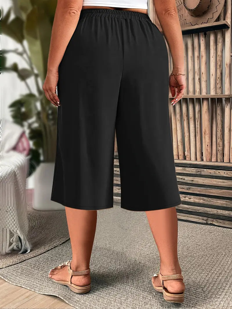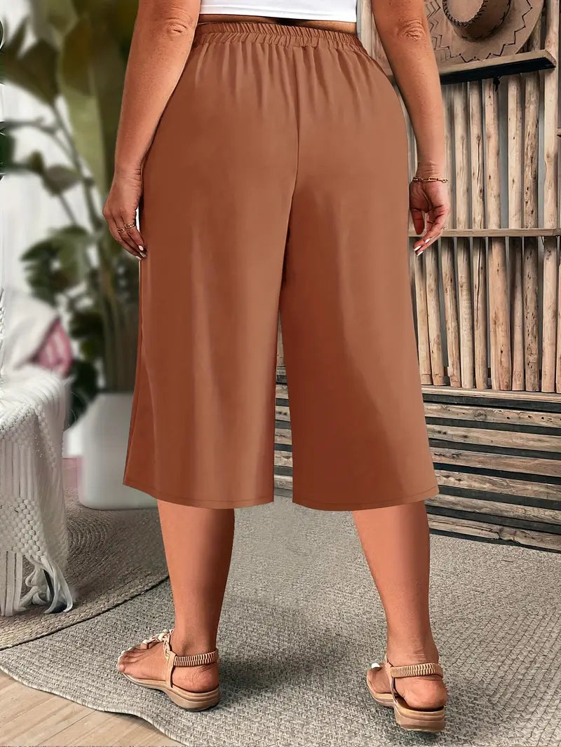 Pantalones Capri de talla grande para mujer con cintura elástica, color verde oliva, verano casual