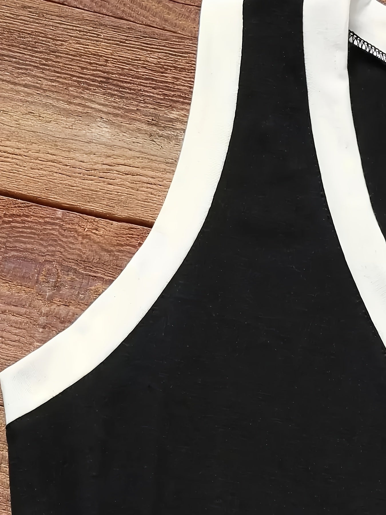 Top sin mangas con cuello en V y bloques de color para mujer talla plus