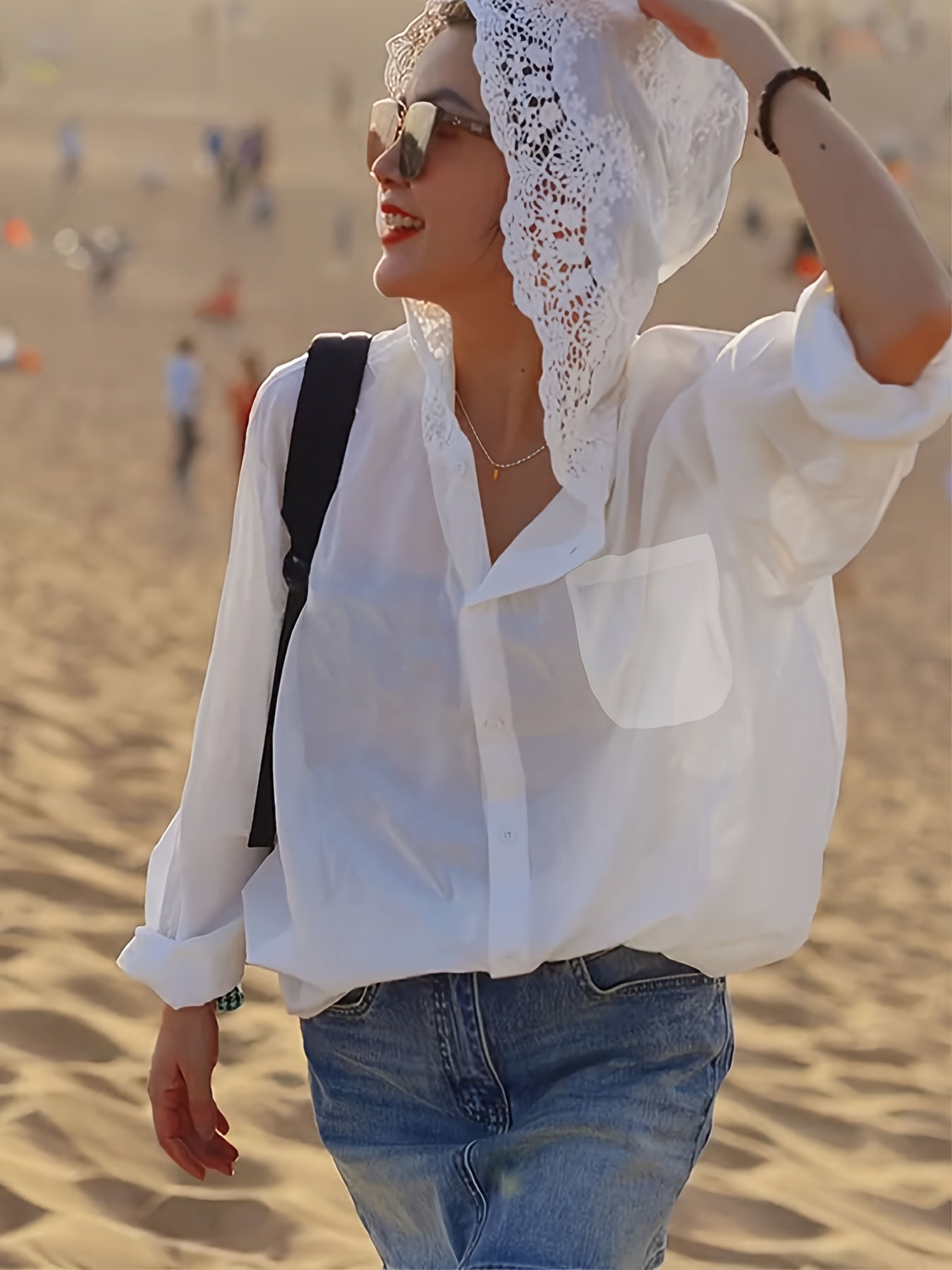 Chaqueta de manga larga con capucha y borde de encaje para mujer talla plus, color sólido, ropa exterior casual para todas las estaciones