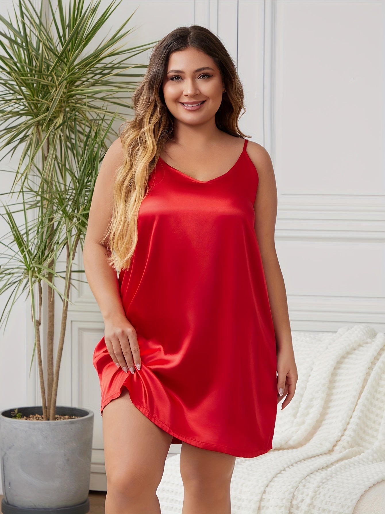 Vestido de dormir de satén para mujer talla plus con escote en V