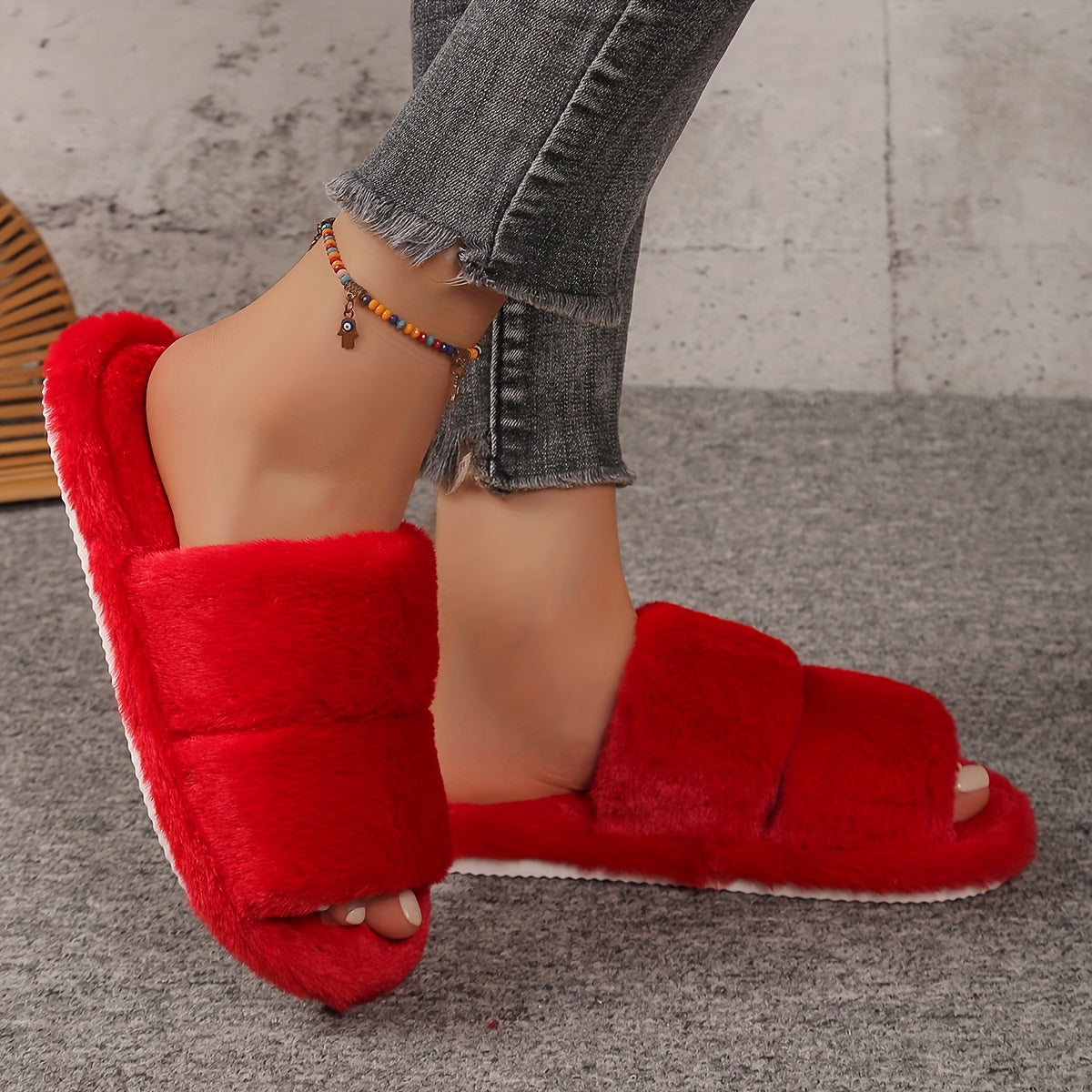 Women's Plush Leopard Print Open-Toe Slippers with EVA Sole and Soft Fabric