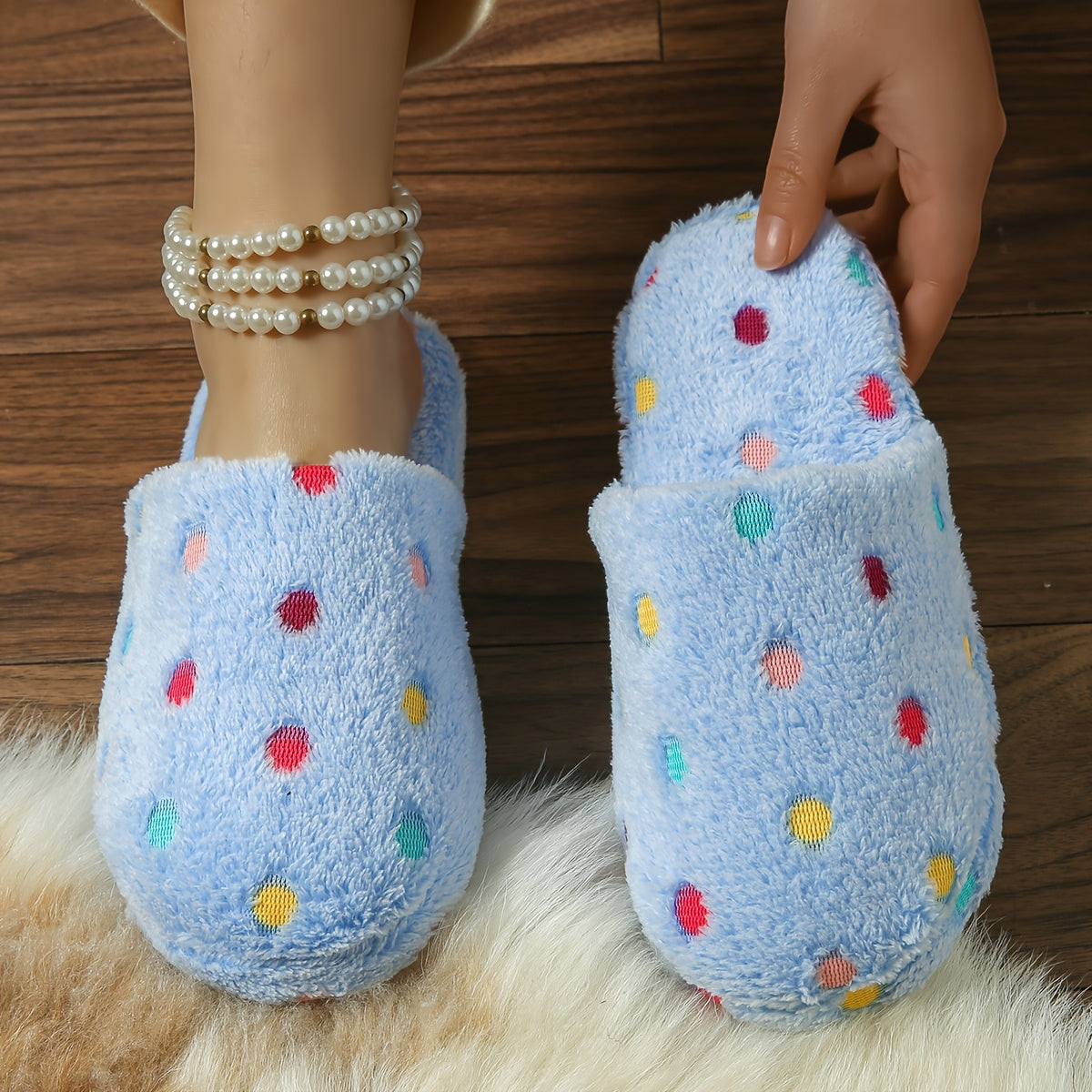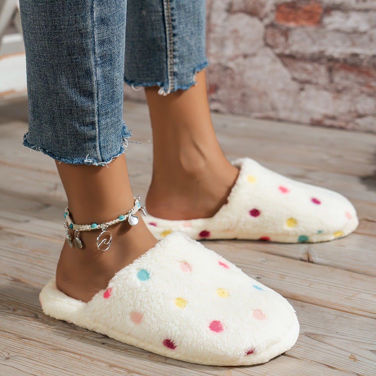 Women's Polka Dot Plush Indoor Slippers Warm Comfortable Closed-Toe Shoes