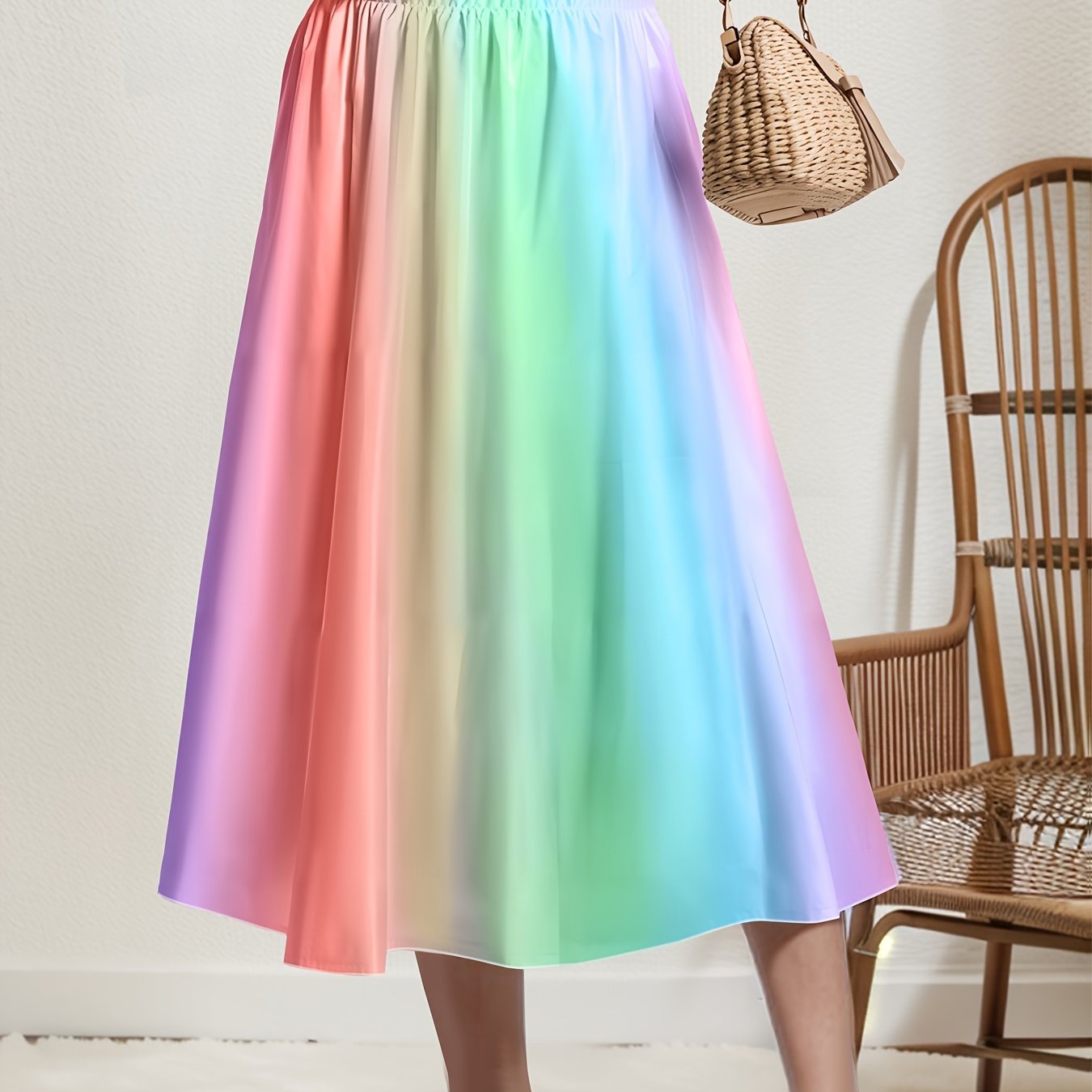 Falda de paraguas casual de talla grande con estampado arcoíris para mujer