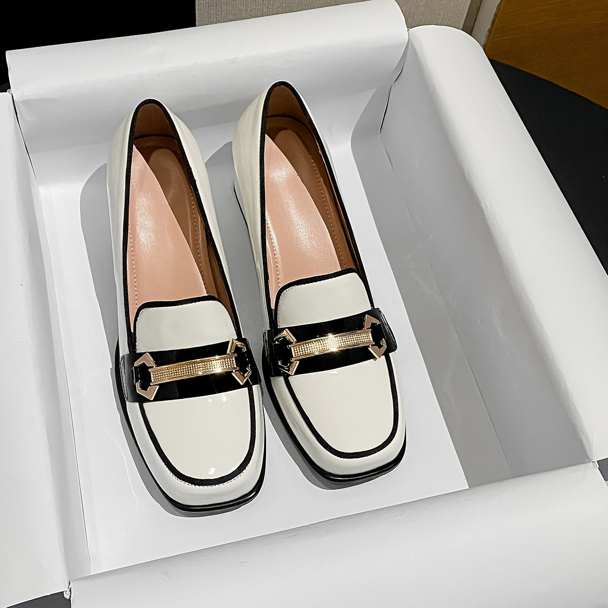 Women's Retro Square Toe High Heels Non-Slip Chunky Pumps PU Cover Rubber Sole
