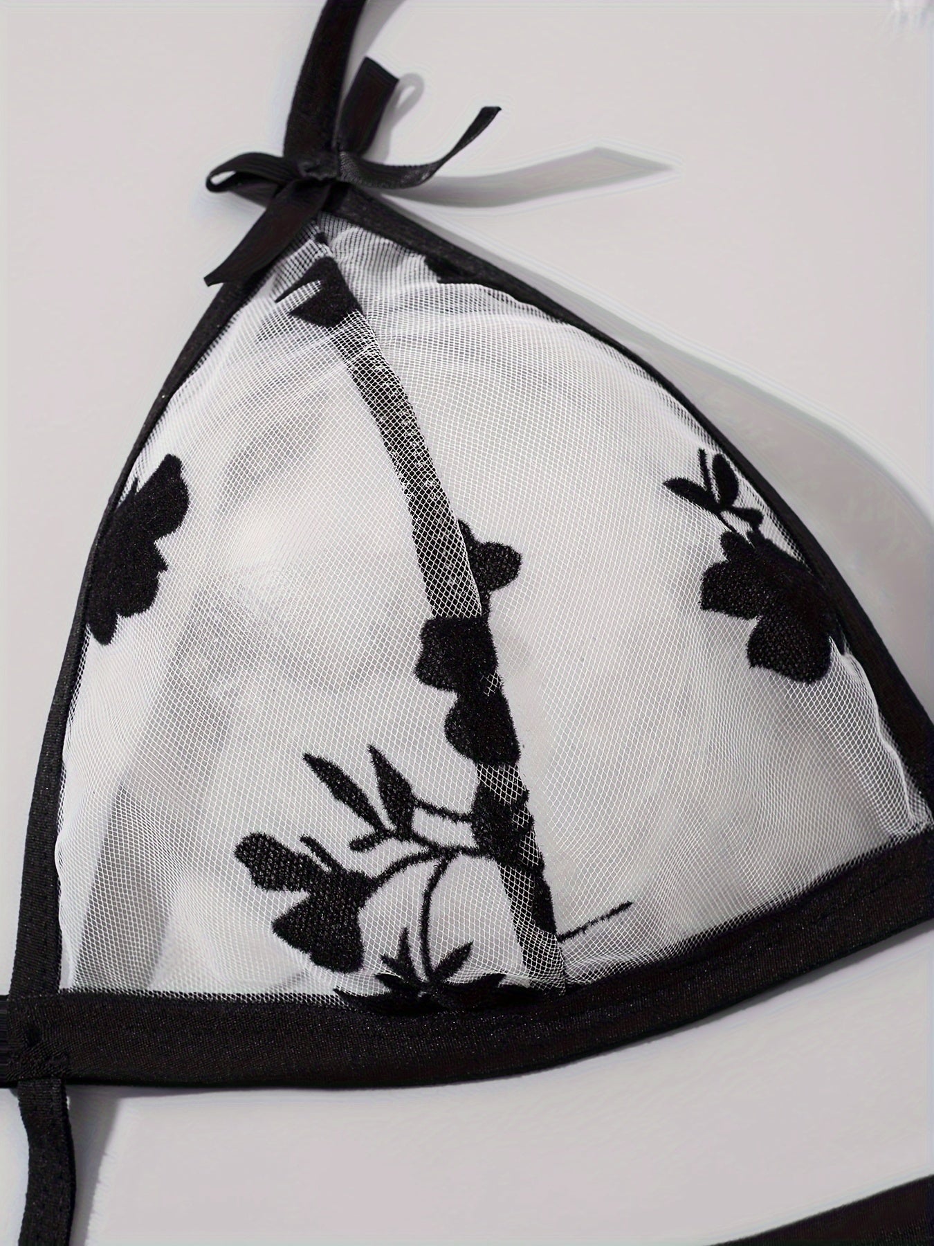 Conjunto de lencería sexy para mujer con vestido halter de escote en V profundo y tanga