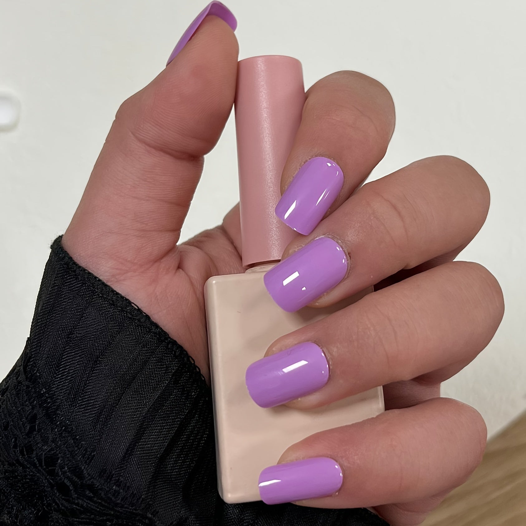 Juego de 24 piezas de uñas cortas cuadradas para mujer en colores sólidos con purpurina