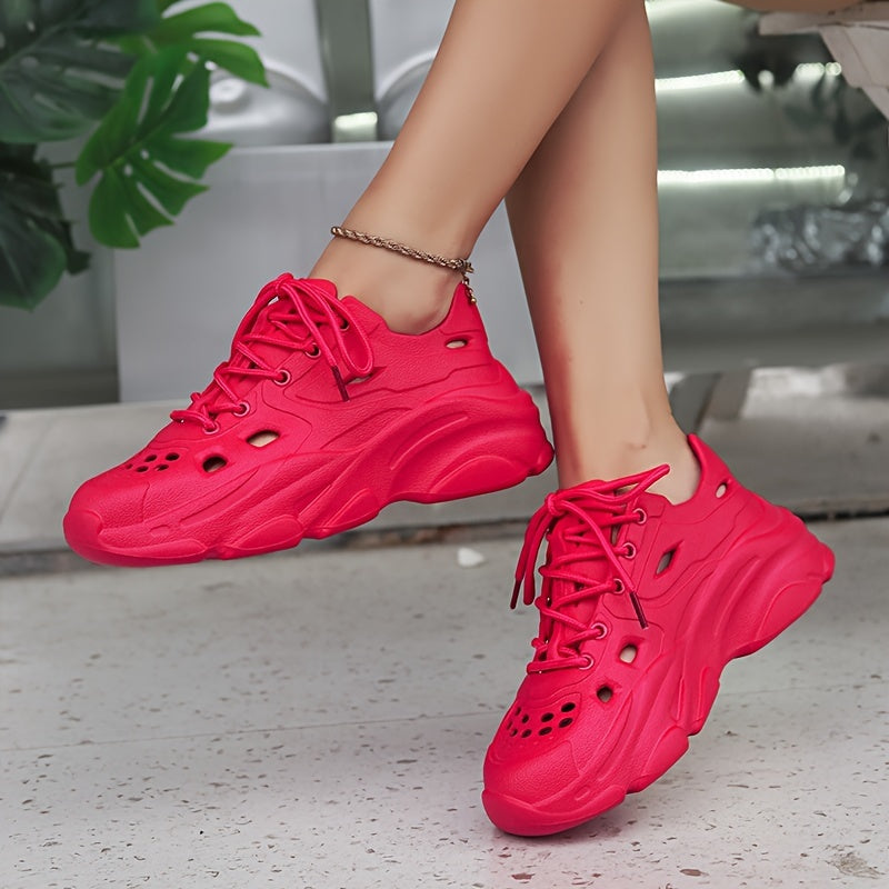 Women's Solid Color Platform Clogs Casual Hollow Out Lace Up Shoes
