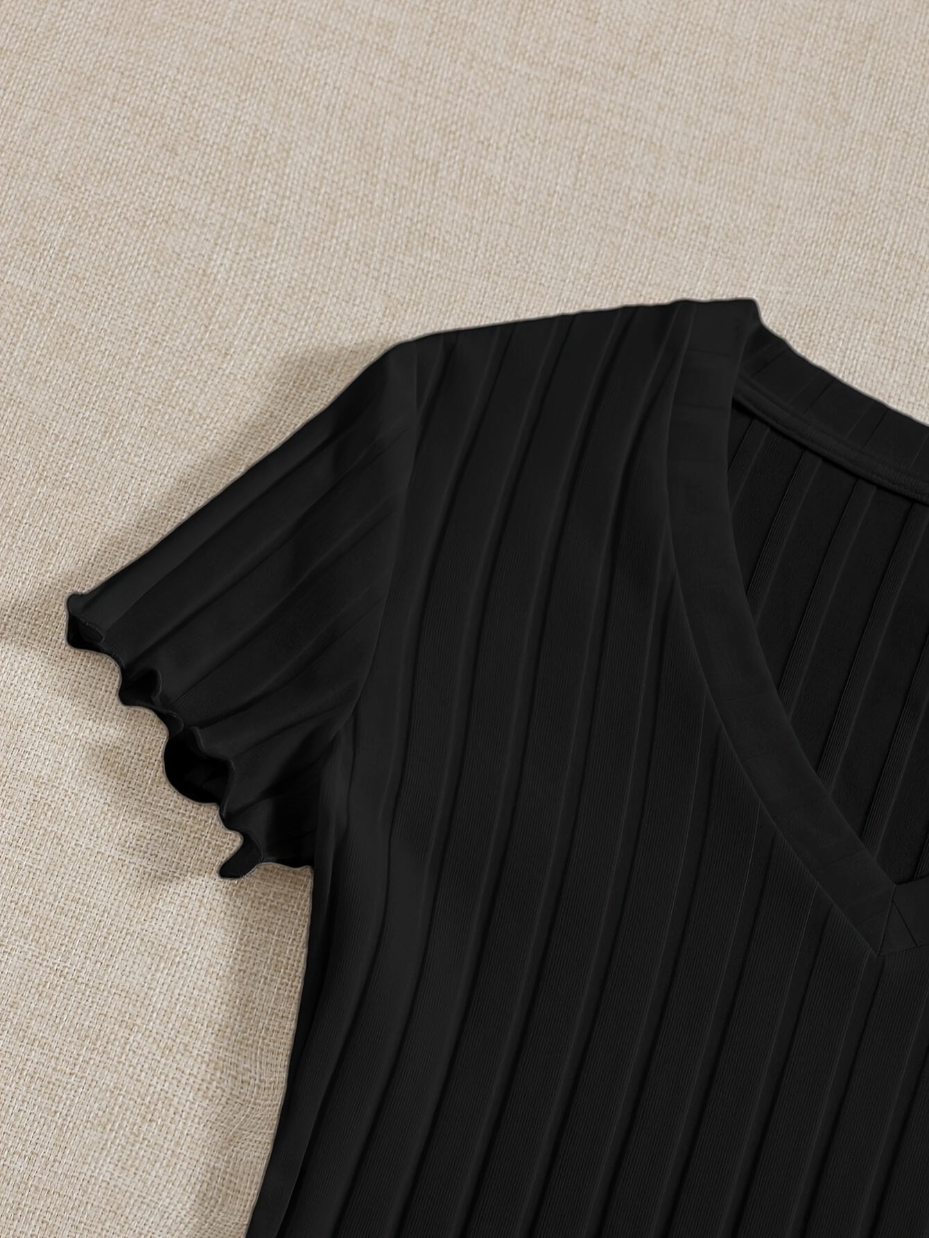 Conjunto elegante de manga corta y cuello en V de color sólido para mujer