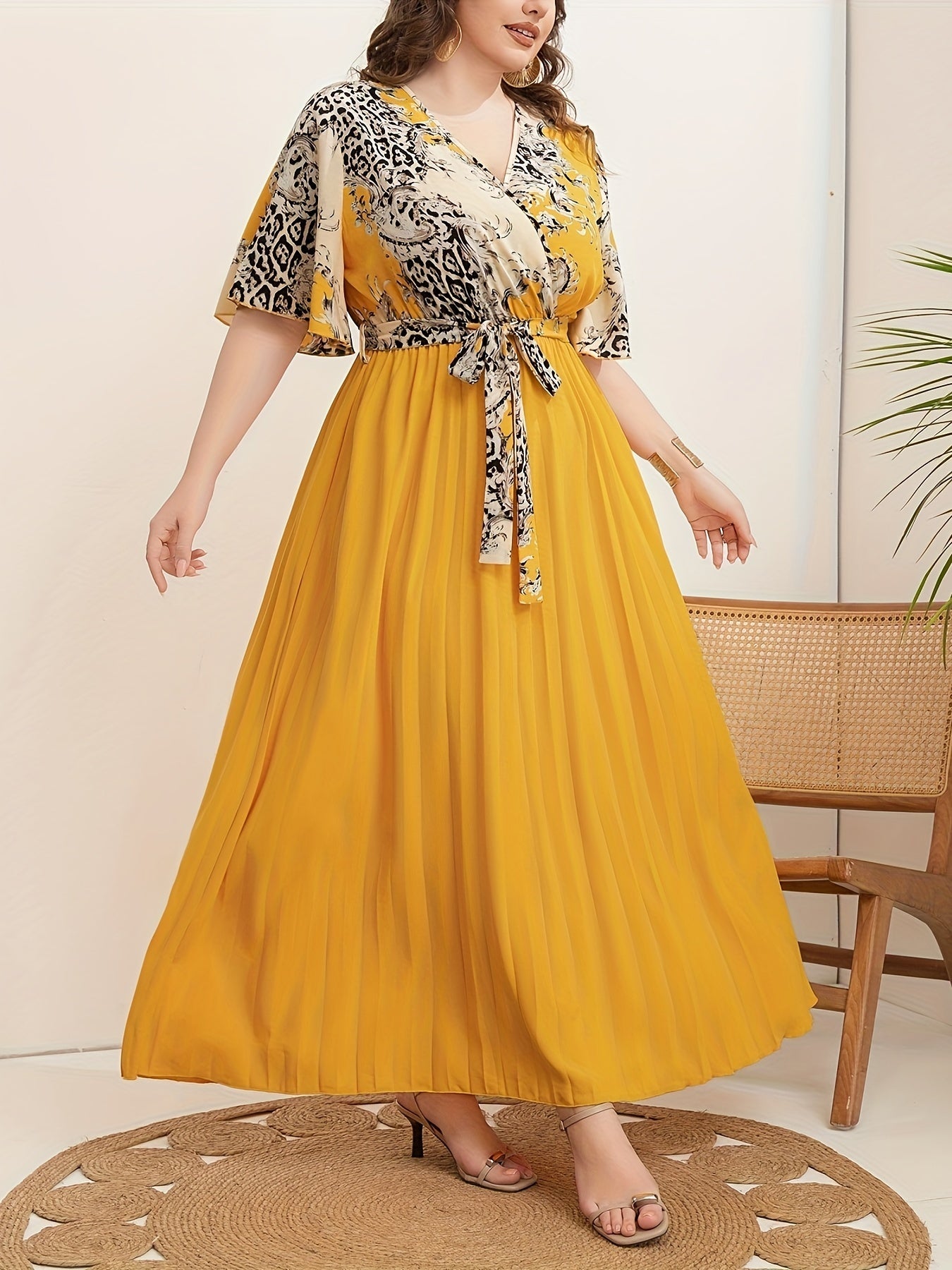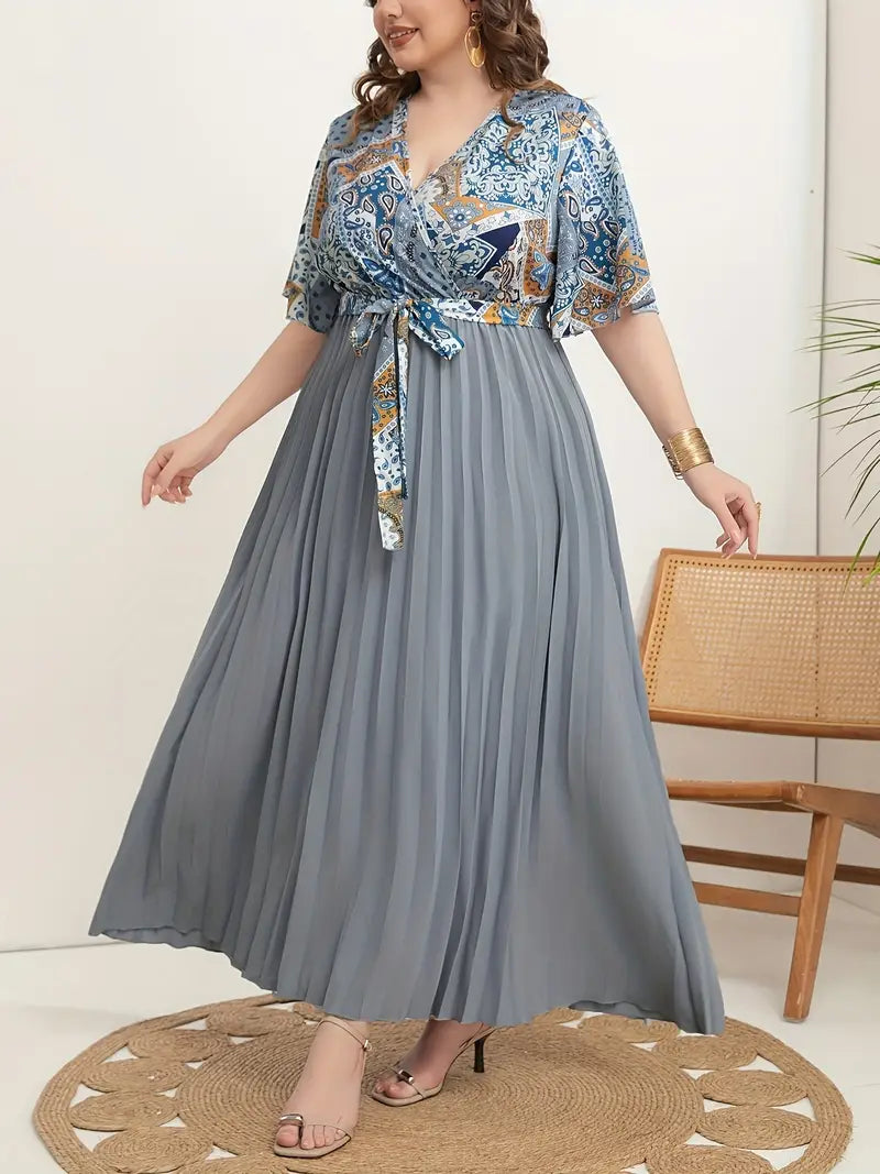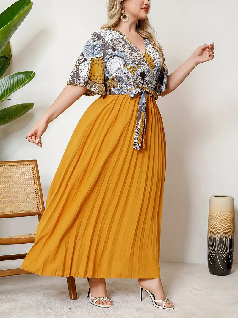 Vestido de mujer con escote en V y patrón de Oriente Medio elegante