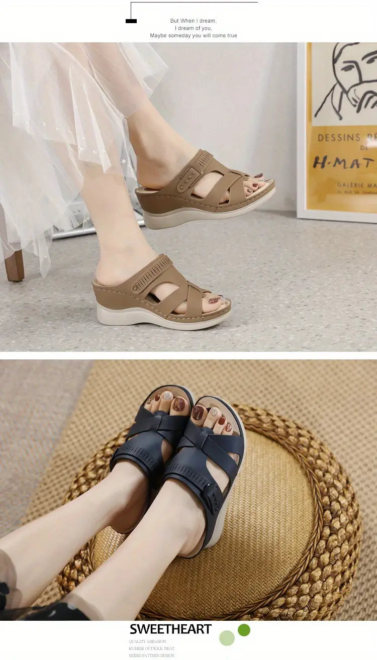 Sandalias de cuña para mujer con punta abierta y correa cruzada, casuales para verano, slip-on