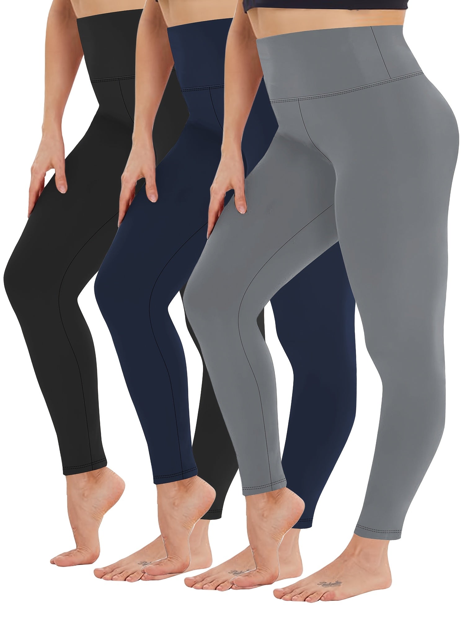 Leggings de yoga de cintura alta y control de abdomen para mujer, pack de 3, negro, azul y teal